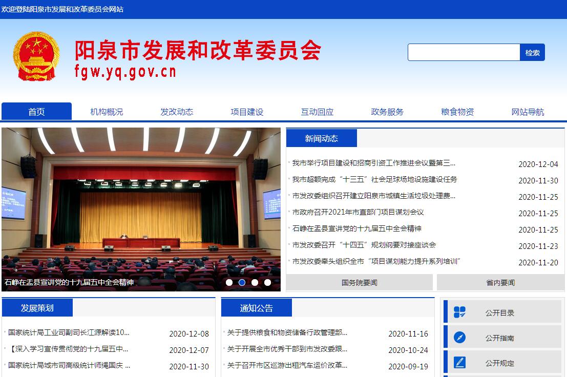 阳泉市发展和改革委员会主要职责: (一)拟订并组织实施全市国民经济和社会发展战略、中长期规划和年度计划,统筹协调经济社会发展,研究分析全市经济形势,提出全市国民经济发展、价格总水平调控和优化经济结构的目标、政策。研究提出价格改革方案。衔接、平衡各主要行业的行业规划。受市人民政府委托向市人大提交国民经济和社会发展计划的报告。(二)监测全市宏观经济和社会发展运行态势,承担预测预警和信息引导的责任,研究宏观经济运行、总量平衡等重要问题并提出宏观调控政策建议。加强对宏观经济运行和社会发展情况的跟踪监测和分析。调节国民经济日常运行,编制并组织实施近期经济运行调控目标、政策和措施。负责经济运行中生产要素和协调工作,组织协调解决经济运行中的重大问题并向市政府提出意见和建议。(三)汇总分析全市财政、金融等方面的情况,参与制定财政政策和金融政策。拟订并组织实施价格政策,牵头开展社会信用体系建设。提出社会资金导向政策建议,对社会资金进行综合平衡,负责企业债券的审核上报工作。(四)协调全市经济体制改革的任务,研究经济体制改革和对外开放的重大问题,协调有关专项经济体制改革方案,研究提出优化所有制结构的政策建议。组织起草全市国民经济和社会发展、经济体制改革等规范性文件。指导和协调全市招标投标工作。统筹推进全市公共资源交易平台建设。负责编制全市公共资源交易目录。(五)承担规划全市重大建设项目和生产力布局的责任,拟订全社会固定资产投资总规模和投资结构的调控目标、政策及措施,衔接、平衡需要安排政府投资和涉及重大建设项目的专项规划。安排市级财政性建设资金,研究拟订市人民政府出资的建设项目。按规定权限审批政府建设项目,指导和监督国外贷款建设资金的使用,研究提出利用外资和境外投资的规划、总量平衡和结构优化的目标和政策。(六)推进全市经济结构战略性调整。组织拟订综合性产业政策,负责协调第一、二、三产业发展的重大问题并衔接平衡相关发展规划,做好与国民经济和社会发展规划、计划的衔接、平衡。统筹城乡发展、新型城镇化建设,协调农业和农村经济社会发展的重大问题。会同有关部门拟订服务业发展战略,拟订现代物流业发展规划。组织拟订高新技术产业发展、产业技术进步的规划,协调解决技术装备推广应用等方面的问题。(七)承担全市重要商品总量平衡和宏观调控的责任,编制重要农产品、工业品和原材料进出口总量计划并监督执行,根据经济运行情况对进出口总量计划进行调整。执行战略物资储备规划,负责组织战略物资及应急储备物资在本市的收储、动用、轮换和管理,会同有关部门管理粮食、棉花、食糖等储备,负责全市应急物资相关的储运设施建设项目管理。负责全市散装水泥行政监督管理,做好固废利用基地、循环经济园区建设和散装水泥推广使用工作。(八)负责全市社会发展与国民经济发展的政策衔接。组织拟订社会发展战略、总体规划,统筹推进基本公共服务体系建设和收入分配制度改革,提出促进就业、完善社会保障与经济协调发展的政策建议。(九)推进可持续发展战略。组织拟订发展循环经济、全社会能源资源节约和综合利用规划及政策措施并协调实施。参与编制生态建设、环境保护规划。协调生态建设、能源资源节约和综合利用的重大问题,综合协调环保产业和清洁生产促进有关工作。(十)统筹能源规划与国民经济和社会发展规划的衔接,提出能源协调发展的政策建议。分析能源发展动态和趋势。牵头基地类国家、省重大项目的争取和实施,行使市光伏基地建设领导组办公室职能。(十一)组织实施地方性价格法规、规章和价格政策。监测、预测价格总水平变动。提出价格总水平控制目标及价格调控措施,建立和完善价格管理制度。执行政府管理的重要商品和服务项目价格,制定和调整省委托的重要商品、服务项目相关价格和收费标准。组织政府定价听证会。负责物价成本调查监审工作。(十二)组织编制全市国民经济动员规划、计划,研究国民经济动员与国民经济、国防建设的关系,协调相关重大问题,组织实施国民经济动员有关工作。负责全市地方铁路建设工程施工的属地安全监管。(十三)贯彻落实国家关于粮食和物资储备管理的法律法规和规章,起草相关的政策和规范性文件并监督执行。研究提出粮食和物资储备体制改革方案并组织实施。(十四)根据国家物资储备规划和储备品种目录,组织实施我市重要物资和应急储备物资的收储、轮换和日常管理,落实有关动用计划和指令,管理我市粮食、棉花和食糖储备,负责储备粮棉糖行政管理,保障军队等政策性粮食的供应。承担全市粮食流通宏观调控的具体工作。承担粮食安全责任制考核日常工作。(十五)负责储备基础设施的建设和管理,拟订储备基础设施、粮食流通设施建设规划并组织实施,管理有关储备基础设施和粮食流通设施项目。负责石油、天然气收储、轮换和日常管理,按照动用指令,按程序组织实施。(十六)拟订地方粮食和物资储备仓储管理有关技术标准和规范并组织实施。负责粮食流通,加工行业安全生产工作的监督管理,承担物资储备承储单位安全生产的监管责任。(十七)负责对管理的政府储