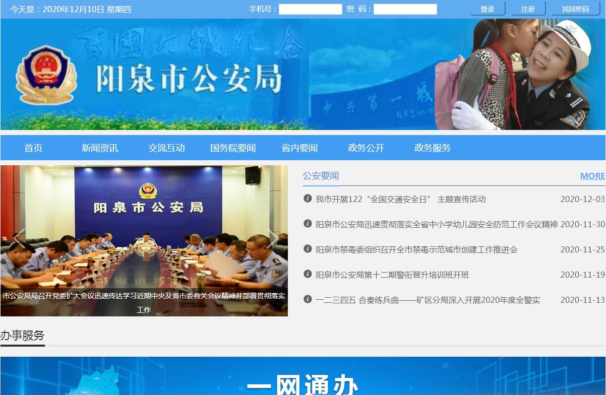 阳泉市公安局审批服务“一网通办”平台。