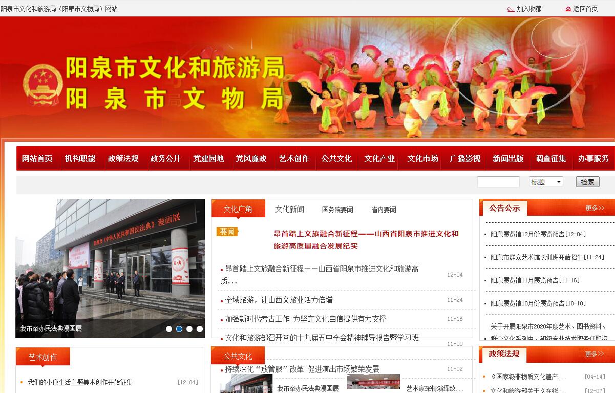 阳泉市文化和旅游局(阳泉市文物局)主要职责:(一)组织开展全市文化和旅游、广播电视、文物保护等方面的工作,研究拟订政策措施。起草历史文化地方性法规、规章草案。(二)负责制定全市文化和旅游发展、广播电视管理、文物保护的发展规划和年度计划并组织实施。推进文化和旅游与相关领域的融合发展,推进文化和旅游领域体制机制改革。指导协调全市基层文化和旅游、广播电视、文物保护工作。(三)负责全市性重大文化和旅游活动。指导市级重点文化设施和基层设施建设。组织全市旅游整体形象推广,促进文化产业和旅游产业对外合作和推广。制定旅游市场开发战略并组织实施。提高旅游资源开发利用效能,指导、推进全域旅游,助推城镇化建设和新农村建设。(四)指导、管理全市文艺事业,指导协调艺术创作生产,扶持体现社会主义核心价值观、具有导向性代表性示范性的文艺作品,推动各门类艺术、各艺术品种发展。(五)负责公共文化事业发展,推进公共文化服务体系和旅游公共服务体系建设,深入实施文化惠民工程,统筹推进基本公共文化服务标准化、均等化。指导建立健全全市智慧旅游、旅游集散、旅游公共信息和咨询服务平台体系,推动旅游服务便利化。(六)指导、推进文化和旅游科技创新发展,推动文化和旅游科技研究成果的推广应用。推进文化和旅游行业信息化、标准化建设。管理全市艺术教育、文化科技研究工作,指导艺术教育体制改革。拟订全市艺术教育、文化科技发展规划并组织实施。组织实施旅游区、旅游设施、旅游服务、旅游产品等方面的行业标准,会同有关部门拟订全市旅游业的地方性标准并组织实施。(七)贯彻落实国家有关非物质文化遗产保护政策,负责全市非物质文化遗产保护,拟订非物质文化遗产保护规划,组织实施非物质文化遗产的保护、传承、普及、弘扬和振兴。(八)统筹规划文化产业和旅游产业,组织实施文化和旅游资源普查、挖掘、保护和利用工作,促进文化和旅游产业发展。指导重点旅游区域、旅游目的地和旅游线路的规划发展,引导休闲度假。负责对旅游景区、景点质量等级评定和公告。负责假日旅游、特种旅游和红色旅游工作。对从事编制旅游规划的单位进行资质认证管理。指导培育文化和旅游新产品、新业态,组织构建旅游产业体系。对工艺美术进行行业管理。(九)拟订全市文化和旅游市场发展规划,指导文化和旅游市场发展,对文化和旅游市场经营进行行业监管,推进文化和旅游行业信用体系建设,依法规范文化和旅游市场。强化全市旅游市场秩序和服务质量的综合监管,建立健全旅游综合协调、旅游案件联合查办、旅游投诉统一受理等综合监管机制,引导全社会文明旅游。监测旅游经济运行,负责旅游统计及行业信息发布。综合协调、监督管理旅游业安全,指导应急救援工作。(十)负责文化和旅游、广播电视、文物保护行政审批工作。负责对文化类社会组织进行登记前审查、核准和日常管理、监督。指导文化和旅游行业组织的业务工作。(十一)指导全市文化和旅游市场综合执法,组织查处全市性文化、旅游、广播电视、文物等市场的违法行为,督查督办大案要案,维护市场秩序。(十二)指导、管理文化和旅游对外交流、合作和宣传、推广工作,组织实施重大文化和旅游对外交流活动,推动阳泉文化走出去。(十三)制定并组织实施全市文化和旅游行业人才教育培训规划。(十四)负责全市广播电视、信息网络试听节目服务机构和业务的监管并实施准入和退出管理。负责全市广播电视传输覆盖网的管理,监管全市广播电视节目传播。(十五)管理、协调和指导全市文物的保护、抢救、发掘、研究、安全、宣传教育、合理利用等工作。审核、申报市级文物保护单位,推荐、申报全国和省级重点文物保护单位。协同住房和城乡建设部门承担国家及省历史文化名城(镇、村)的推荐申报和相关保护管理的监督工作。负责全市博物馆的监督与管理。负责对省级、市级文物保护单位修缮进行审批。(十六)承担市委、市人民政府交办的其他任务。