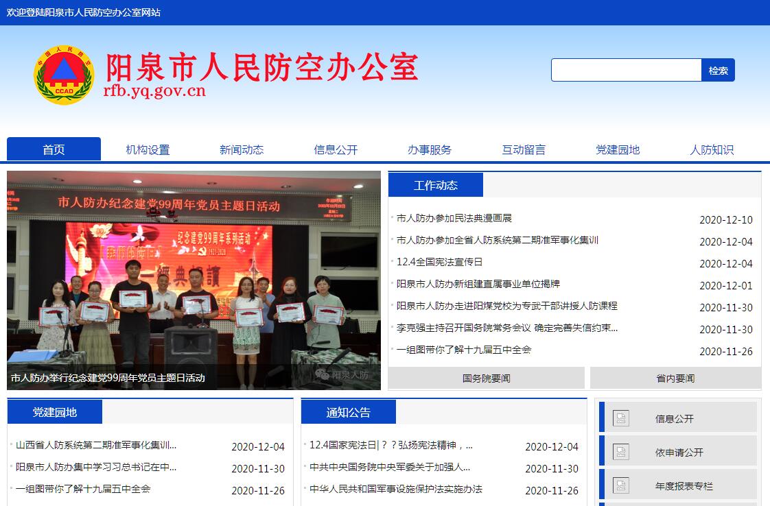 阳泉市人民防空办公室主要职责:(一)贯彻落实人民防空法律、法规和方针、政策;组织开展人民防空行政执法,依法审批相关事项。(二)编制人民防空建设中长期发展规划;会同有关部门拟定城市防空袭方案及人民防空建设与城市建设相结合规划;制定人民防空工作年度计划,并组织实施。(三)负责人民防空工程规划、建设、维护和技术管理,对城市地下空间开发利用兼顾人民防空功能进行监督和管理。(四)开展人民防空组织指挥工作,建设战时人口疏散基地;组织指导群众防空组织建设和防空防灾演练;依法对重要经济目标的人民防空建设进行监督检查。(五)负责人民防空信息化、通信警报建设;组织发布防空防灾警报。(六)负责管理人民防空平战结合工作;组织开发利用和管理已建人民防空工程、设备及设施。(七)负责组织开展人民防空宣传教育;负责推广应用人民防空科研成果,普及人民防空知识和技能。(八)利用人民防空资源参与抢险救灾和应急救援。(九)管理和使用人民防空经费及人民防空国有资产,依法征缴社会负担的人民防空经费。(十)战时配合城市防卫、要地防空作战,组织人民开展城市防空袭的相关工作,消除空袭后果。(十一)承办市政府、阳泉军分区交办的其他事项。