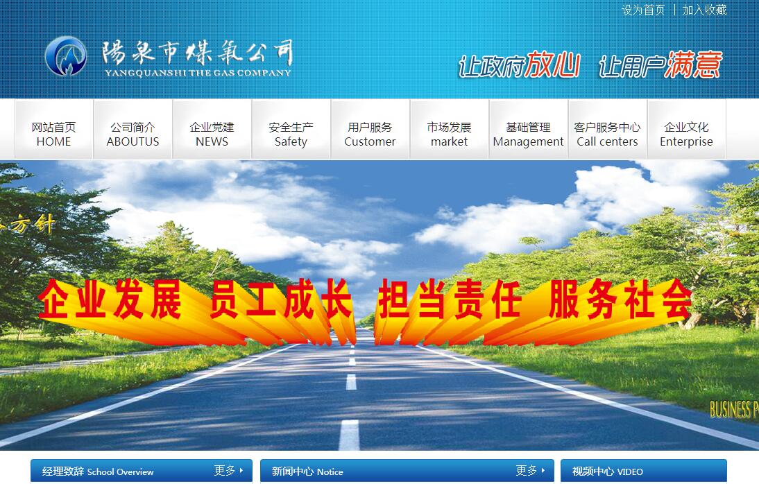 | 网站简介: 阳泉市煤气公司是集燃气设施建设和居民、福利、工业、商业等各类用户供气输配为一体的国有独资综合性燃气企业。 |