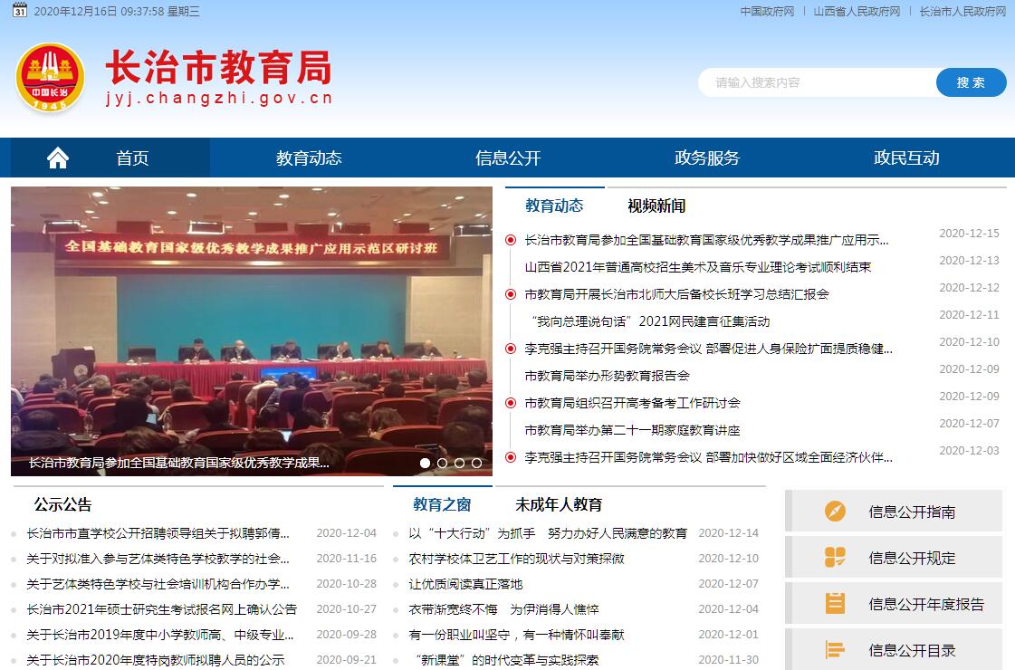 长治市教育局主要职责:1、贯彻落实国家和省制定的教育方针政策及教育法律法规,开展依法治教工作。2、会同有关部门编制全市教育改革发展规划、计划并组织实施。3、宏观管理全市的学前(幼儿)教育、普通中小学教育、职业技术教育、民办教育和成人教育工作,组织开展教育教学研究和改革工作。4、指导各县区开展教育行政管理及学校内部管理体制改革,对全市教职工队伍进行宏观管理。5、组织各级各类学校开展思想政治工作、德育工作、精神文明建设工作、体育卫生工作、艺术教育工作、劳动教育工作和国防教育工作。6、根据国家政策,管理全市的学历教育、教师资格认定工作,落实国家语言文字工作,制定有关中考招生、考试、录取管理工作的相关政策措施,组织高考、中考等各类国家教育考试等。7、负责局机关党建工作、统战工作、对台工作和市直学校的党群工作,抓好市直学校的组织工作、宣传工作。8、负责制定全市学校、幼儿园安全工作有关制度,督促各县市区和学校抓好学校安全教育,保证学校和师生生命和财产安全。9、负责各类高等、中等学历教育招生考试和学籍学历管理工作。10、指导、监督教育系统学生资助管理机构助学贷款发放工作。 11、开展全市教育督导工作,组织对全市各级各类教育及其他教育机构教育工作的督导、评估、检查、验收;组织开展全市教育发展水平和质量监测。12、承办市委、市政府交办的其他事项。