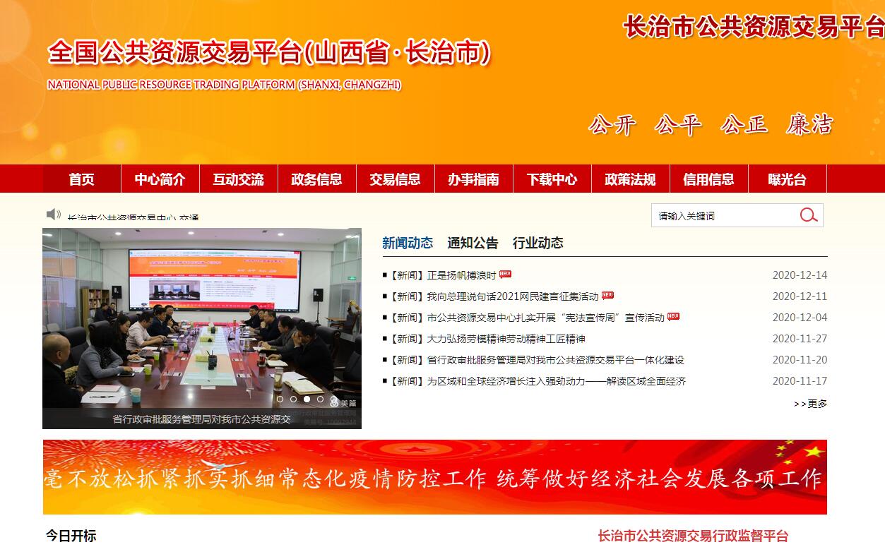长治市公共资源交易中心(长治市政府采购中心)主要职责:一、贯彻执行国家有关公共资源交易、政府集中采购的法律法规、方针政策和省委、省政府及市委、市政府的决策部署。二、负责整合全市政府采购、工程建设项目招标投标、土地使用权和矿业权出让、国有产权等交易平台,形成规则统一、公开透明、服务高效、监督规范的公共资源交易平台体系。三、负责实施公共资源交易平台全流程电子化改革,推动实现与国家和省级平台互联互通、信息共享。落实政府采购制度改革要求,建立健全政府采购竞争机制。四、组织开展全市公共资源交易工作,组织实施市级政府集中采购。制定全市公共资源交易和市级政府集中采购现场管理办法、工作流程和服务规范。五、负责为全市公共资源交易提供场所、设施、设备、信息以及电子统一归档等保障工作。六、承担对进入市级公共资源交易平台的政府采购、工程建设项目招标投标、土地使用权和矿业权出让、国有产权交易及药品、医疗设备采购、碳排放权、排污权、林权等其他资源类交易活动的组织、协调、管理、见证和现场监督交易全过程。七、负责建立全市公共资源交易主体场内信誉评价制度,协助建设公共资源交易信用评价体系。负责受理公共资源交易、中介服务等事项的质疑投诉举报。协助配合有关部门查处现场交易、采购违法违规违纪行为。八、负责对参与公共资源交易活动的交易主体、中介机构、评审专家等进行全过程见证留痕和现场监督工作。九、指导县区公共资源交易工作。十、承办市行政审批服务管理局交办的其他任务。