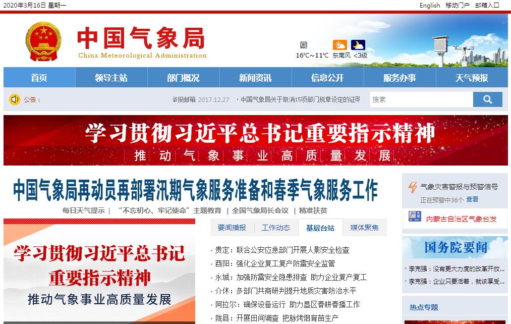 中国气象局是国务院直属事业单位。它的前身是中央军委气象局,成立于1949年12月。1994年由国务院直属机构改为国务院直属事业单位后,经国务院授权,承担全国气象工作的政府行政管理职能,负责全国气象工作的组织管理。全国气象部门实行统一领导,分级管理,气象部门与地方人民政府双重领导,以气象部门领导为主的管理体制。我国气象事业是科技型、基础性社会公益事业,坚持“公共气象、安全气象、资源气象”的发展理念,坚持“以人为本,无微不至、无所不在”的服务宗旨。2000年1月1日,《中华人民共和国气象法》开始施行,之后颁布实施了《人工影响天气管理条例》、《气象探测环境和设施保护办法》、《防雷减灾管理办法》、《施放气球管理办法》等行政法规和部门规章。我国已初步形成了天基、空基和地基相结合、门类比较齐全、布局基本合理的现代化大气综合观测系统;基本组成了由天气预报、气候预测、人工影响天气、干旱监测与预报、雷电防御、农业气象与生态、气候资源开发利用等构成的气象服务体系,气象服务领域涉及工业、农业、渔业、商业、能源、交通、运输、建筑、林业、水利、国土资源、海洋、盐业、环保、旅游、航空、邮电、保险、消防等多个行业和部门。近年来,随着科学技术和经济社会的发展,大气成分分析与预警预报、空间天气预警、沙尘暴天气监测与预报、防雷装置检测和工程专业设计、健康和医疗气象、突发公共事件紧急响应等气象保障业务和服务也迅速发展。目前,气象服务已基本覆盖了国民经济建设和社会发展与国家安全各个领域,气象服务的社会经济效益投入与产出比达到了1∶40。我国形成了气象科学技术基础性研究、高新技术研究和应用开发研究体系。中国气象局拥有中国气象科学研究院、中国气象局北京城市气象研究所、中国气象局沈阳大气环境研究所、中国气象局武汉暴雨研究所、中国气象局上海台风研究所、中国气象局广州热带海洋气象研究所、中国气象局成都高原气象研究所、中国气象局兰州干旱气象研究所、中国气象局乌鲁木齐沙漠气象研究所等9个国家级科研院所。2004年科技部批准中国气象局成立了灾害天气国家重点实验室。中国气象局是我国首批开展公益类科研院所改革的部门之一,并通过了国家公益类科研院所改革的验收,初步形成了新型气象科技创新体系。中国气象局是政府间气候变化专门委员会(IPCC)的国内牵头单位,开展了一系列气候变化科学、影响与对策的研究。我国坚持独立自主的外交方针,围绕国家政治、经济、科技和外交战略,积极开展与国际组织、国家和地区的多边和双边气象科技合作,已与160多个国家和地区开展了双边气象科技合作与交流,与21个国家签署了气象科技合作协议,向70多个发展中国家提供了设备和技术援助。有120多个国家和地区的350多位气象局长及高级官员来华考察。中国是世界气象组织(WMO)的成员国。1973年以来,中国气象局局长一直为世界气象组织执行理事会成员。1983年中国气象局局长邹竞蒙当选为WMO第二副主席,1987年当选为主席,1991年连任主席; 2001年我国官员在WMO秘书处任助理秘书长,2004年任WMO副秘书长。我国国家气象中心是WMO区域专业气象中心之一,承担亚洲和太平洋地区的气象预报服务,我国国家气象信息中心是WMO全球气象电信系统区域通信枢纽之一,参加全球气象探测资料的交换。自上世纪80年代以来,我国积极参加全球变暖及气候变化的国际活动,中国科学家长期担任政府间气候变化专门委员会(IPCC)第一工作组的联合主席,为推动气候变化研究和推动人类可持续发展发挥了重要作用。中国科学家还积极参与WMO和台风委员会各领域的活动及有关国际研究计划。中国气象局的主要职责是:(一)拟定气象工作的方针政策、法律法规、发展战略和长远规划;制定、发布气象工作的规章制度、技术标准和规范并监督实施;承担气象行政执法和行政复议工作。(二)组织拟订和实施气象灾害防御规划,参与政府气象防灾减灾决策,组织指导气象防灾减灾工作;组织编制国家气象灾害应急预案,组织气象灾害防御应急管理工作;组织气象灾害监测预警及信息发布系统建设,负责气象灾害监测预警和信息发布;承担国家重大突发公共事件预警信息发布工作;负责重大活动、突发公共事件气象保障工作;组织对重大灾害性天气跨地区、跨部门的气象联防和重大气象保障;组织气象灾害风险普查、风险区划和风险评估工作;组织对国家重点工程、重大区域性经济开发项目、城乡建设的气象服务;管理人工影响天气工作。(三)对国务院其他部门设有的气象工作机构实施行业管理,统一规划全国陆地、江河湖泊及海上气象观测、气象台站网、气象基础设施和大型气象技术装备的发展和布局,审订气象信息采集、传输、加工的质量评价方法并监督实施;组织气象技术装备保障和质量监督、气象计量监督,审核全国大中型气象项目的立项和方案。(四)管理全国陆地、江河湖泊及海上气象情报预报警报、短期气候预测、空间天气灾害监测预报预警、城市环境气象预报、火险气象等级预报和气候影响评价的发布;组织论证并审查大气环境影响评价。(五)组织气候变化科学相关工作;组织气候资源的综合调查、区划,指导气候资源的开发利用和保护;组