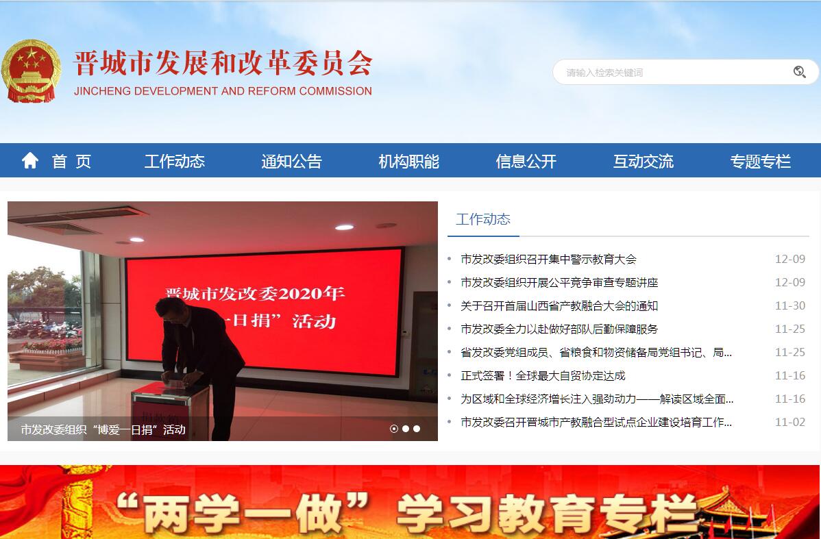 晋城市发展和改革委员会主要职责:(一)拟定并组织实施全市国民经济和社会发展战略、中长期规划和年度计划;提出国民经济发展、经济结构优化、价格总水平调控目标及调控政策的建议;拟定全市产业规划和产业政策,衔接、平衡各主要行业的行业规划;拟定价格改革年度计划、中长期规划和建议;研究提出价格改革调控措施及方案;受市人民政府委托向市人大作国民经济和社会发展计划的报告。(二)贯彻落实国家、省宏观经济战略和产业政策,提出全市经济、社会调控政策的建议,建立和完善经济、社会调控体系;负责汇总和分析全市国民经济和社会发展情况,对经济运行、物价稳定进行监测、预测和预警,提出调控的政策建议。(三)负责汇总和分析全市财政、金融等方面的情况,提出有关协调财政、物价、信贷政策的建议,对社会资金进行综合平衡,提出社会资金导向政策建议;研究提出政府建设资金筹措政策建议;负责企业债券的审核上报工作,协调企业上市工作。(四)推进和综合协调全市经济体制改革,负责改革问题研究、改革方案拟定和改革工作协调。负责拟订全市营商环境的建设及计划编制;研究提出优化营商环境改革相关政策建议;协调开展营商环境第三方评估;负责协调社会信用体系建设工作。(五)研究全市对外开放的重大问题,提出利用外资和境外投资的发展战略、方针和政策,组织编制全市利用外资和境外投资的规划,引导外资投向;负责涉外商品价格管理工作;负责全市借用国外贷款的总量控制、结构优化和使用方向,监督债务安全情况,组织实施与国外、省外友好城市的经济合作;负责编制和上报利用外资、引进项目计划。(六)提出全社会固定资产投资总规模和投资重点的建议,规划重大项目布局和生产力布局;安排政府投资的项目建设以及重大外资项目、境外投资项目,并做好协调组织工作;引导民间资金用于固定资产投资的方向;组织推进重点项目工作;指导协调监督全市工程咨询和招投标工作。(七)研究提出全市高质量转型发展总体规划及相关政策,提出国民经济重要产业的发展战略和规划;研究并协调农业和农村经济社会发展的重大问题,衔接农业农村专项规划和政策,编制实施以工代赈计划;指导工业发展,推进工业化和信息化;组织制定工业总体发展规划、行业发展规划;交通等基础产业发展规划;指导技术进步和产业现代化,推动高新技术产业发展,实施技术进步和产业现代化的宏观指导,协调解决重大技术装备推广应用等方面的重大问题;研究提出服务业发展规划和政策,协调服务业发展;研究提出现代物流业发展战略和规划。(八)承担全市重要商品总量平衡和宏观调控的责任,做好社会总量需求和总供给等重要经济总量的平衡和重大比例关系的协调,搞好资源开发、生产力布局和生态环境建设规划及扶贫地区经济开发计划,引导和促进全市经济结构合理化和区域经济协调发展;组织研究城镇化战略,协调指导全市城镇化工作;编制重要工业品和原材料进出口总量计划,监督计划执行情况,并根据经济运行情况协调进出口总量计划;组织编制全市国民经济动员规划、计划,组织实施国民经济动员工作;执行国家战略物资储备规划;负责全市应急物资相关的储运设施建设项目管理;负责全市主要农产品、重要商品和服务项目成本调查及定价成本监审和价格鉴定、认证、评估管理监督工作,参与拟定粮食、经济作物、农业生产资料等政策补贴标准。(九)负责全市社会发展与国民经济发展的政策衔接;组织拟定社会发展战略、总体规划和年度计划;研究拟定人口发展战略和规划;参与拟定人口和计划生育、科学技术、教育、文化、卫生、民政等发展政策,推进社会事业建设;研究提出促进就业、调整收入分配、完善社会保障与经济协调发展的政策建议;协调社会事业发展和改革中的重大问题及政策。(十)推进可持续发展战略。负责组织拟定发展循环经济、全社会能源资源节约和综合利用规划及政策措施并协调实施;负责全市节能减排综合协调工作;参与编制生态建设、环境保护、低碳发展规划;协调生态建设、能源资源节约和综合利用的重大问题,综合协调环保产业和清洁生产工作。(十一)研究拟定全市国民经济和社会发展以及经济体制改革、对外开放的有关规章和制度,并参与实施。(十二)承担全市价格管理责任;负责监测分析价格运行情况并提出相关政策和价格改革建议;依法制定、调整权限范围内的市管重要商品、服务价格和收费标准并组织实施;负责全市行政事业收费许可管理,主持重要商品价格和服务收费调定价项目听证会;开展价格政策咨询服务。(十三)负责把安全生产工作纳入全市国民经济与社会发展总体规划和布局,提出把安全生产监管监察、基础设施、应急救援体系建设、隐患治理等涉安项目列入市政府投资计划的建议。(十四)贯彻落实国家关于粮食流通和物资储备工作的法律法规和规章;起草全市粮食流通和物资储备管理的地方法规、规章草案和有关政策并监督执行;研究提出全市粮食流通和物资储备体制改革方案并组织实施;负责粮食和物资储备的对外合作与交流。(十五)负责粮食流通行业管理。制定行业发展规划、政策,拟订市级地方粮食流通有关标准、粮食质量标准,制定有关技术规范并监督执行;开展粮食收获质量调