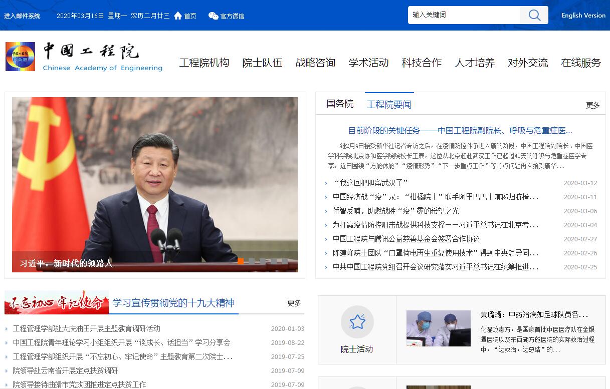 | 网站简介: 中国工程院是中国工程科学技术界的最高荣誉性、咨询性学术机构,由院士组成,致力于促进工程科学技术事业的发展。工程院的职能和任务:1.贯彻落实科学发展观,积极实施科教兴国战略、可持续发展战略和人才强国战略,组织研究、讨论工程科学技术领域的重大、关键性问题,结合国民经济和社会发展规划、计划,对工程科学技术的发展与应用,提出报告和建议;2.对国家重要工程科学技术问题组织开展战略性研究、提供决策咨询,接受政府和有关方面委托,对重大工程科学技术发展规划、计划、方案及其实施提供咨询;3.促进全国工程科学技术界的团结与合作,推动我国工程科学技术水平不断提高和工程科学技术队伍建设,激励优秀人才成长;4.组织开展工程科学技术领域的学术交流与合作,代表中国工程科学技术界,参加相应的国际组织和有关国际学术活动;5.弘扬科学精神,传播科学思想,倡导先进科学文化,维护科学道德尊严,普及科学技术知识。 |