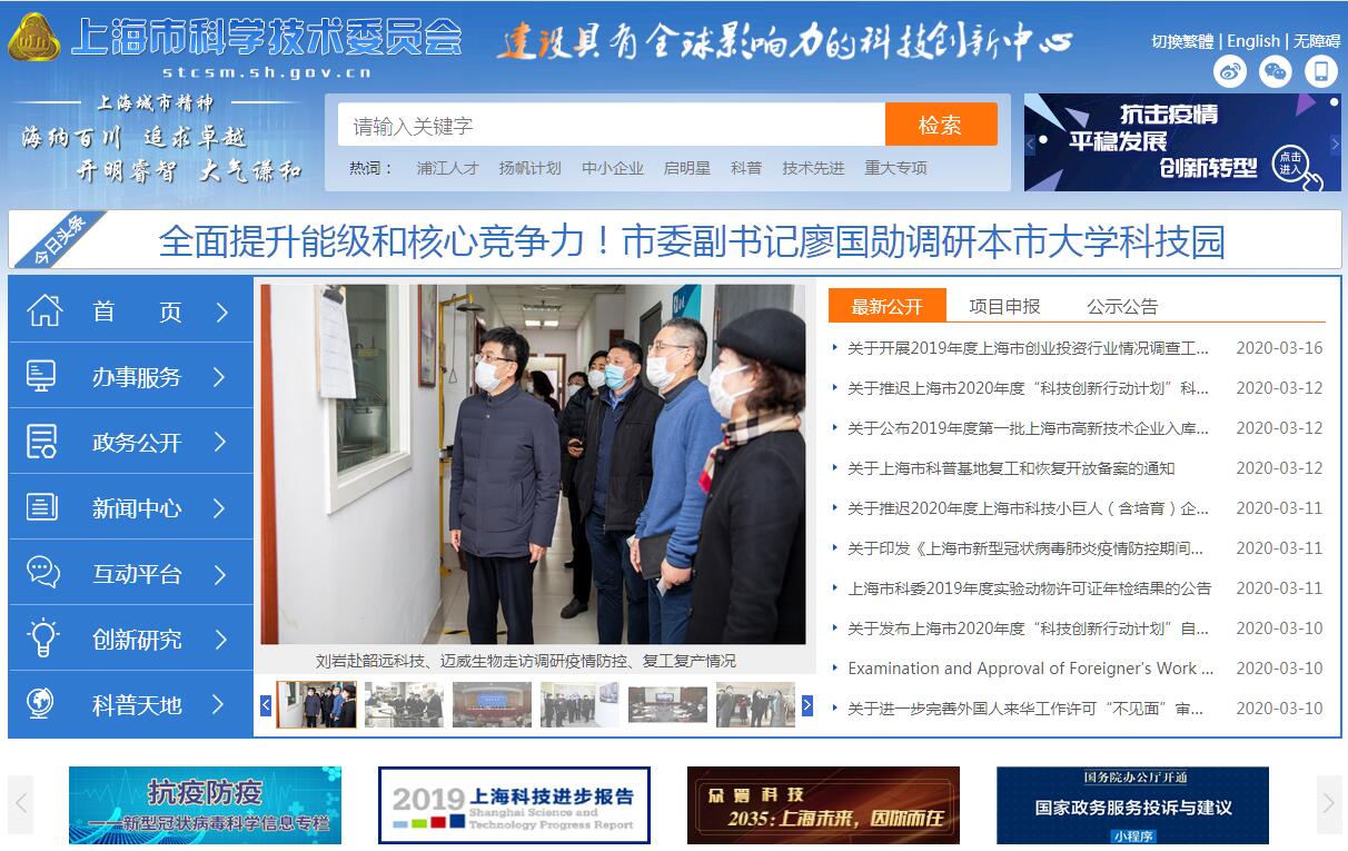 上海市科学技术委员会,为市政府组成部门。其主要职责是:(一)贯彻执行科技工作的法律、法规、规章和方针、政策;研究起草科技工作的地方性法规、规章草案和政策,并组织实施有关地方性法规、规章和政策;研究本市科技发展战略和重大问题;研究确定科技发展的布局和优先发展领域。(二)根据本市国民经济和社会发展总体规划,研究拟订本市科技发展的中长期规划和年度计划,并组织实施。(三)研究提出本市科技体制改革的政策和措施;建立和完善科技创新体制、科技创新机制;负责指导科研院所体制改革工作;加强科技进步工作的宏观管理和统筹协调职责,优化科技资源配置,推进本市创新体系建设。(四)编制基础性、应用性和开发性科研项目计划并组织实施;编制和实施本市重点实验室、科学研究中心和工程技术研究中心等研发基地的建设计划;制定研发公共服务平台建设规划并组织实施;负责科技部下放的国家科技支撑计划项目课题、科技成果推广、技术市场的有关管理职责;推进科技部认定的高新技术产业化基地建设工作。(五)负责科技重大专项的组织实施和综合协调平衡;与有关部门共同推进科技成果转化和高新技术产业化工作,共同拟订本市高新技术产业、科技企业发展的相关政策,推动高新技术产业、科技企业的发展;会同有关部门推进重大科技专项和重大科技产业工程的组织实施;推动农村科技工作,指导农业重大科技产业的示范工程;负责推动现代生物与医药产业发展。(六)指导张江高新技术产业开发区的业务工作,会同有关部门研究拟订张江高新技术产业开发区发展规划,承办高新技术企业的认定工作。(七)制定科学技术普及工作规划并组织实施,实行政策引导,推动科普工作发展;负责本市实验动物管理工作。(八)研究多渠道增加科技投入的措施;负责归口管理的科学事业费、科技“三项费”和专项经费的预算、决算和监督管理;研究建立科技投入产出绩效后评估机制。(九)会同有关部门研究制定科技人才发展规划及有关政策;负责管理上海市自然科学基金、白玉兰科技人才基金等基金项目并组织实施;实施科技人才培养工程;负责两院院士的候选人推荐工作。(十)加强国内合作,推进与长三角地区科技合作和对口科技支援等工作。(十一)负责科技外事和国际科技合作工作;负责审批科技系统所属人员考察、参加国际学术会议、科技合作等出国(出境)事宜;负责与外国政府、地区和科技机构、科技人员间科技合作的组织实施工作;负责技术出口和技术保密的审查工作;负责与港澳台有关的科技工作。(十二)归口管理科技成果、科技奖励、科技保密、技术市场和科技信息、科技统计、科技档案等工作;协同有关部门推进与科技相关的知识产权工作。(十三)研究制定科技中介服务体系建设规划及相关政策,指导科技中介机构发展。(十四)指导、协调和服务中央在沪科学研究机构的有关业务工作;指导协调各区县的科技管理工作。(十五)负责有关行政复议受理和行政诉讼应诉工作。(十六)承办市政府交办的其他事项。