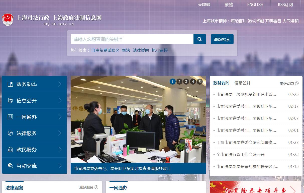 上海市司法局是主管上海市司法行政工作的市政府组成部门,是本市政法机关的重要组成部分。其主要职责是:(一)贯彻执行国家和本市有关司法行政工作的法律、法规、规章和方针、政策;结合本市实际,起草司法行政工作的地方性法规、规章草案,制定司法行政工作的政策和发展规划,并在有关法规、规章和政策、规划发布后组织实施。(二)指导和监督监狱管理工作。(三)指导和监督司法行政系统强制隔离戒毒、社区戒毒、社区康复、自愿戒毒工作以及戒毒场所管理工作。(四)制定法制宣传教育计划和普及法律常识规划并组织实施,指导各区县、各行业法制宣传、依法治理工作和开展对外法制宣传。(五)指导和监督全市的律师工作和企业法律顾问工作并承担相应责任,负责管理在沪设立的国外(境外)律师机构;审批本市在国外(境外)设立的律师机构。(六)指导和监督全市的公证工作并承担相应责任。(七)监督管理全市的法律援助工作;指导法律服务专用电话工作。(八)指导和监督基层司法所建设、人民调解和基层法律服务工作。(九)指导和监督社区矫正工作,指导刑释和解除强制隔离戒毒人员安置帮教工作。(十)组织实施本市国家司法考试工作。(十一)负责本市司法鉴定管理工作,承担市司法鉴定工作委员会的日常工作。(十二)指导司法行政系统法学研究工作。(十三)指导司法行政系统开展对外交流与合作。(十四)按照规定和权限,负责本系统国有资产的管理;负责局属单位固有资产投资项目计划的审核、立项、转报;监督指导监狱、戒毒场所固定资产投资和管理工作。(十五)指导和监督司法行政系统队伍建设,负责本市司法行政系统的警务管理和警务督察工作,协助管理区县司法局领导班子和领导干部。(十六)承担上海市依法治市领导小组的日常工作。(十七)负责有关行政复议受理和行政诉讼应诉工作。(十八)承办市政府交办的其他事项。