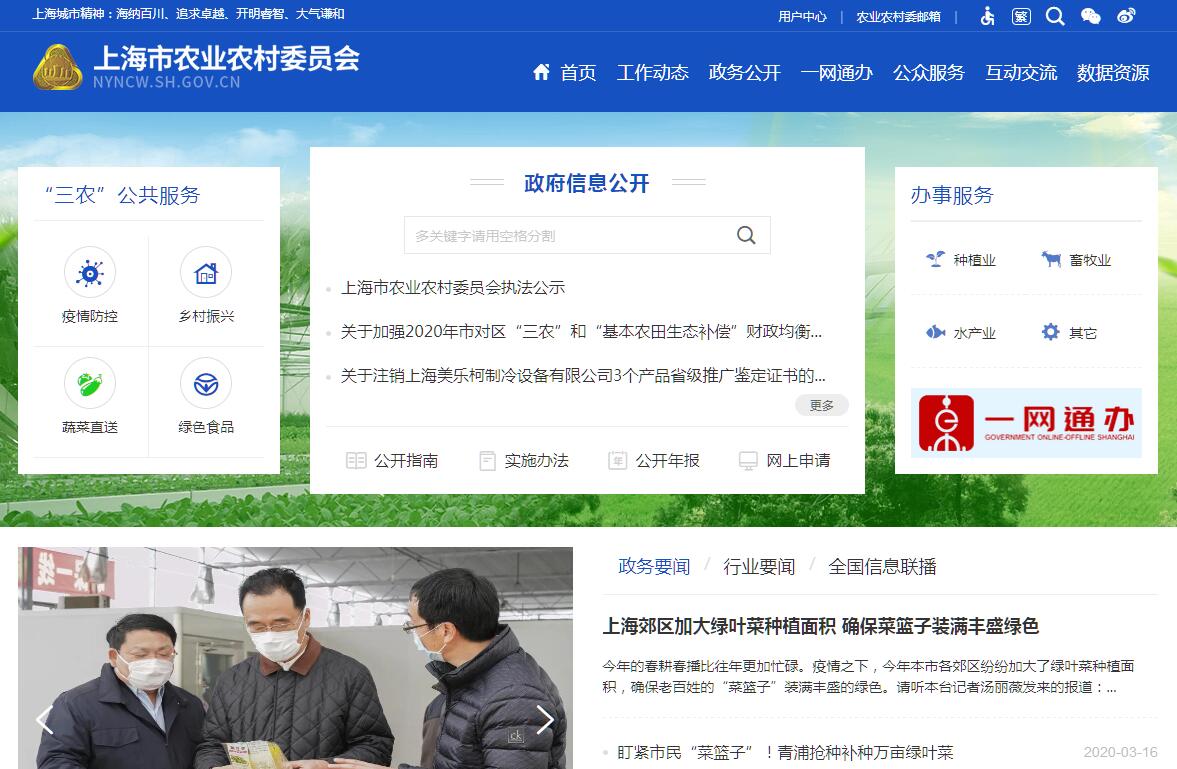 上海市农业农村委员会是主管全市“三农”工作的市政府组成部门。上海市农业农村委员会主要职责是:(一)贯彻执行有关农业农村工作的法律、法规、规章和方针、政策。研究起草有关农业农村工作的地方性法规、规章草案,拟订“三农”工作的发展战略、中长期规划、重大政策并组织实施。指导农业综合执法。参与拟订涉农的财政扶持、农产品价格、农村金融保险、农业进出口等政策。(二)统筹推动发展农村基础设施和农村社会事业、农村公共服务、农村文化体育、乡村治理。牵头组织改善农村人居环境。指导农村精神文明和优秀农耕文化建设。指导推进农民持续增收,协调推进农村综合帮扶工作,指导、监督减轻农民负担工作。(三)拟订深化农村经济体制改革和巩固完善农村基本经营制度的政策。负责农民承包地管理工作,依照有关规定,管理农村宅基地有关工作。负责农村集体产权制度改革,指导农村集体经济组织发展和集体资产管理。指导农民合作经济组织、农业社会化服务体系、新型农业经营主体建设与发展。按照分工,管理农业农村标准化工作。(四)指导乡村特色产业、农产品加工业、休闲农业和乡镇企业发展。研究提出促进大宗农产品流通的建议,培育、保护农业品牌。监测分析农业农村经济运行,发布农业农村经济信息。负责农业统计和农业农村信息化有关工作。(五)负责种植业、畜牧业、渔业、农业机械化等农业各产业的监督管理。指导粮食、蔬菜等农产品生产。组织构建现代农业产业体系、生产体系、经营体系,指导农业标准化生产。指导农垦相关农业产业的发展。指导农业行业安全生产工作。(六)负责农产品质量安全监督管理。组织开展农产品质量安全监测、追溯、风险评估。贯彻执行有关农产品质量安全国家标准。指导农业检验检测体系建设。按照有关规定,负责农产品质量安全检测机构相关监督管理工作。(七)组织农业资源区划工作。指导农用地、渔业水域以及农业生物物种资源的保护与管理,负责水生野生动植物保护、耕地以及永久基本农田质量保护工作,推进高标准农田建设。指导农产品产地环境管理和农业清洁生产,指导设施农业、生态循环农业、节水农业发展以及农村可再生能源综合开发利用、农业生物质产业发展。负责外来物种监督管理。(八)负责有关农业生产资料和农业投入品的监督管理。指导渔政、渔港监督管理。组织农业生产资料市场体系建设,贯彻执行有关农业生产资料的国家标准。指导现代种业市场体系建设。负责农药生产、经营、使用和质量监督管理,负责肥料有关监督管理,负责农作物种子、种苗监督管理。贯彻执行兽药质量、兽药残留限量和残留检测方法国家标准。负责兽药、饲料和饲料添加剂监督管理。组织兽医医政、兽药药政药检工作,负责执业兽医和畜禽屠宰行业管理。(九)负责农业防灾减灾、农作物重大病虫害防治工作。指导动植物防疫检疫体系建设,组织、监督动植物防疫检疫工作,依职权认定疫情并组织扑灭。(十)负责农业投资管理。研究提出农业投融资体制机制改革建议。编制市级投资安排的农业投资项目建设规划,研究提出农业投资规模和方向、扶持农业农村发展财政项目的建议,按市政府规定权限,负责农业投资项目资金安排和监督管理。(十一)推动农业科技体制改革和农业科技创新体系建设。指导农业产业技术体系和农技推广体系建设,组织开展农业领域的高新技术和应用技术研究、科技成果转化和技术推广。负责农业转基因生物安全监督管理和农业植物新品种保护。(十二)指导农业农村人才工作。拟订农业农村人才队伍建设规划并组织实施,指导农业教育和农业职业技能开发,指导新型职业农民培育、农业科技人才培养和农村实用人才培训工作。(十三)牵头开展农业对外合作工作。承办政府间农业涉外事务,组织开展有关农业的国内国际交流合作,具体执行有关农业援外项目。(十四)完成市委、市政府交办的其他任务。
