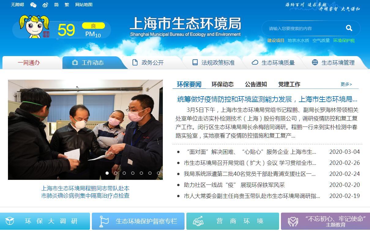 上海市生态环境局主要职责:(一)负责建立健全生态环境基本制度。贯彻执行有关生态环境的法律、法规、规章和方针、政策,会同有关部门拟订生态环境政策、规划并组织实施,起草有关地方性法规、规章草案。会同有关部门编制并监督实施重点区域、流域、海域、饮用水水源地等生态环境规划和环境功能区划,组织拟订生态环境标准,制定生态环境基准和技术规范。(二)负责重大生态环境问题的统筹协调和监督管理。牵头协调处理较大及以上环境污染事故和生态破坏事件,指导协调各区政府对较大及以上突发生态环境事件的应急、预警工作。牵头指导实施生态环境损害赔偿制度。协调解决跨区域环境污染纠纷,统筹协调重点区域、流域、海域生态环境保护工作。(三)负责监督管理减排目标的落实。组织制定陆地和海洋各类污染物排放总量控制、排污许可证制度并监督实施,确定大气、水、海洋等纳污能力,监督检查污染物减排任务完成情况,实施生态环境保护目标责任制。(四)负责提出生态环境领域固定资产投资规模和方向的建议,参与提出生态环境项目财政性资金安排的建议,配合有关部门做好组织实施和监督工作。参与指导推动循环经济和生态环保产业发展。(五)负责环境污染防治的监督管理。制定大气、水、海洋、土壤、噪声、光、恶臭、固体废物、化学品、机动车等的污染防治管理制度并监督实施。会同有关部门监督管理饮用水水源地生态环境保护工作,组织指导城乡生态环境综合整治工作,监督指导农业面源污染治理工作。(六)指导协调和监督生态保护修复工作。组织编制生态保护规划,监督对生态环境有影响的自然资源开发利用活动、重要生态环境建设和生态破坏恢复工作。监督各类自然保护地生态环境监管制度执行情况。监督野生动植物保护、湿地生态环境保护等工作。指导协调和监督农村生态环境保护,监督生物技术环境安全,组织协调生物多样性保护工作,参与生态保护补偿工作。(七)负责核与辐射安全的监督管理。拟订有关政策、规划、标准,牵头负责辐射安全工作协调机制有关工作,参与核事故应急处理,负责辐射环境事故应急处理工作。监督管理放射源和射线装置安全,监督管理核技术应用、电磁辐射、伴生放射性矿产资源开发利用中的污染防治。对核技术利用设计、制造、安装及无损检验活动实施监督管理。(八)负责生态环境准入的监督管理。受市政府委托,对重大经济和技术政策、发展规划以及重大经济开发计划进行环境影响评价。按照国家和上海市有关规定,组织实施区域、规划、项目环境影响评价制度。拟订并组织实施生态环境准入清单,指导协调园区生态环境管理。(九)负责生态环境监测工作。制定生态环境监测制度和规范、拟订相关标准并监督实施。会同有关部门统一规划生态环境质量监测站点设置,组织实施生态环境质量监测、污染源监督性监测、温室气体减排监测、应急监测,组织建设和管理全市环境监测网和环境信息网。组织对生态环境质量状况进行调查评估、预测预警。组织编报生态环境质量报告,负责统一发布生态环境信息(十)负责应对气候变化工作。组织拟订并实施应对气候变化及温室气体减排重大目标任务、规划和政策,承担联合国气候变化框架公约在本市的履约工作。(十一)组织开展生态环境保护督察。建立健全生态环境保护督察制度,组织协调生态环境保护督察工作,根据授权对各区各有关部门贯彻落实中央和本市生态环境保护决策部署情况进行督察并提出问责建议。(十二)统一负责生态环境监督执法。组织开展生态环境保护执法检查活动。查处重大生态环境违法问题。指导生态环境保护综合执法队伍建设和业务工作。(十三)组织指导和协调生态环境宣传教育工作,落实国家生态环境保护宣传教育纲要,推动社会组织和公众参与生态环境保护。开展生态环境科技工作,组织生态环境重大科学研究和技术工程示范,推动生态环境技术管理体系建设。(十四)开展生态环境国际合作交流,研究提出国际生态环境合作中有关问题的建议,组织协调有关生态环境国际公约相关履约工作,参与处理涉外生态环境事务。(十五)组织协调长江三角洲区域污染防治协作工作,组织研究长江三角洲区域生态环境保护有关重大问题,研究提出长江三角洲区域防治联防联控协作重点。(十六)会同区委组织部门提名、考察区生态环境部门党政领导班子成员,加强对区生态环境部门领导班子履行生态环境职责和落实生态环境重大政策措施情况的考核,对区生态环境部门党的建设进行指导。(十七)完成市委、市政府交办的其他任务。