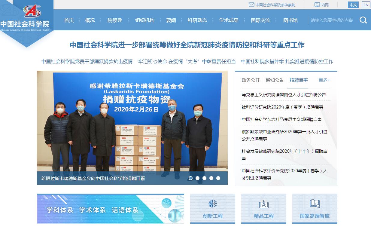 中国社会科学院是中国哲学社会科学研究的最高学术机构和综合研究中心。中国社会科学院是在中国科学院哲学社会科学学部的基础上,于1977年5月建立的。第一任院长胡乔木,第二任院长马洪,第三任院长胡绳,第四任院长李铁映,第五任院长陈奎元,第六任院长王伟光,现任院长谢伏瞻。建院前的中国科学院哲学社会科学学部有经济研究所、哲学研究所、世界宗教研究所、考古研究所、历史研究所、近代史研究所、世界历史研究所、文学研究所、外国文学研究所、语言研究所、法学研究所、民族研究所、世界经济研究所和情报资料研究室等14个研究单位,总人数2200多人。从1977年至1981年期间,中国社会科学院先后成立了工业经济研究所、农村发展研究所、财贸经济研究所、新闻研究所(现为新闻与传播研究所)、马克思列宁主义毛泽东思想研究所、社会学研究所、人口研究所、少数民族文学研究所、世界政治研究所(后与世界经济研究所合并成立世界经济与政治研究所)、美国研究所、日本研究所、西欧研究所(现为欧洲研究所)、中国社会科学杂志社、中国社会科学出版社、研究生院和郭沫若著作编辑出版委员会办公室等16个研究和出版单位。苏联东欧研究所(现为东欧中亚研究所)、西亚非洲研究所和拉丁美洲研究所也在这个时期划归中国社会科学院。1981年以后成立数量与技术经济研究所、文献信息中心、边疆史地研究中心、政治学研究所、台湾研究所和亚洲太平洋研究所。中国社会科学院现有研究所31个,研究中心45个,含二三级学科近300个,其中重点学科120个。全院总人数4200多人,有科研业务人员3200多人,其中高级专业人员1676名,中级专业人员1200多名。他们中拥有一批在国内外学术界享有盛名、学术造诣高深的专家学者和在学术理论研究方面崭露头角的中青年科研骨干。中国社会科学院以学科齐全,人才集中,资料丰富的优势,在中国改革开放和现代化建设的进程中,进行创造性地理论探索和政策研究,肩负着从整体上提高中国人文社会科学水平的使命。中华人民共和国社会科学发展规划,是与国家五年计划的实施同步进行的。中国社会科学院除组织各研究所承担相当数量的国家哲学社会科学规划重点研究项目外,还根据国家社会主义物质文明建设、精神文明建设、民主法制建设的需要和各学科的特点及其发展,确定院重点项目和所重点项目。同时积极承担国家有关部门提出或委托的国家经济与社会发展中具有全局意义的重大理论问题和实际问题的研究任务。重点研究项目通常是以课题组的形式进行的,参加者根据自己的专业特长接受院、研究所的委托或自愿选择研究任务。许多重大课题,由多学科的学者参加,利用多学科综合优势,进行研究。也有一部分科研业务人员,根据自己的专业方向和兴趣,独立地进行研究。文献资料的积累和利用,是各学科研究工作的基本条件。中国社会科学院设有综合性的图书馆,绝大部分研究所设有专业性的图书馆,拥有古今中外的基本文献资料,馆藏图书已达537万余册。其中包括了相当数量的善本典籍、珍本图书。中国社会科学院图书馆、文献信息中心和各研究所,分别与国内外科研机构建立了图书资料交换关系,并通过各种动态性、资料性刊物和文献题录、论文索引等信息载体,为科学研究工作提供丰富的资料和学术信息。广泛地开展对外学术交流是中国社会科学院长期坚持的方针。近些年来对外学术交流不断发展。在交流规模上,从1978年10多批数十人次发展到1995年1398批、4100多人次。在地区分布上,中国社会科学院对外交流已遍及世界80多个国家和地区,同国外约200多个社科研究机构、学术团体、高等院校、基金会和政府有关部门建立了交流关系,与20多个国家和地区签定了交流协议。交流对象既有发达国家,也有广大发展中国家。许多国家的元首、政府总理、内阁长官及政界、学界著名人士到中国社会科学院进行访问、讲演,外国驻华使领馆官员、国际机构代表以及海外记者也经常来中国社会科学院开展学术访谈。频繁的交流活动,不仅促进了中国社会科学研究事业的发展,而且增进了相互了解和友好合作关系。中国社会科学院的对外交流,有互派学者考察访问、开展合作研究、互派长期留学进修生、举办双边或多边学术研讨会、互邀学者讲学等多种形式。近年来,各个学科,无论是历史学、考古学、语言学、民族学、宗教学等传统学科,还是与中国经济发展、社会主义市场经济体制、法制建设和创造和平稳定的国际环境密切相关的经济学、法学、社会学、国际关系学等学科,在对外学术交流中都得到了发展,科学研究工作开展得更加活跃。日益发展的对外学术交流活动,对繁荣中国社会科学事业、促进学科建设和人才培养发挥着重要的作用。中国社会科学院将对外学术交流与课题研究和学科建设紧密结合,通过对外学术交流,促进重点科研项目和学科发展。一批研究人员通过留学进修和访问交流,拓宽了学术视野,业务上得到了培养和提高,许多人已成为科研骨干或学科带头人。中国社会科学院以学术著作、科学论文、调查研究报告、资料翻译和文献整理等形式向社会各界提供科研产品。建院以来,共出版学术著作4293本,科学论文54517篇,调查报告、研究报告7268份,翻译著作2787本,翻译论文16108