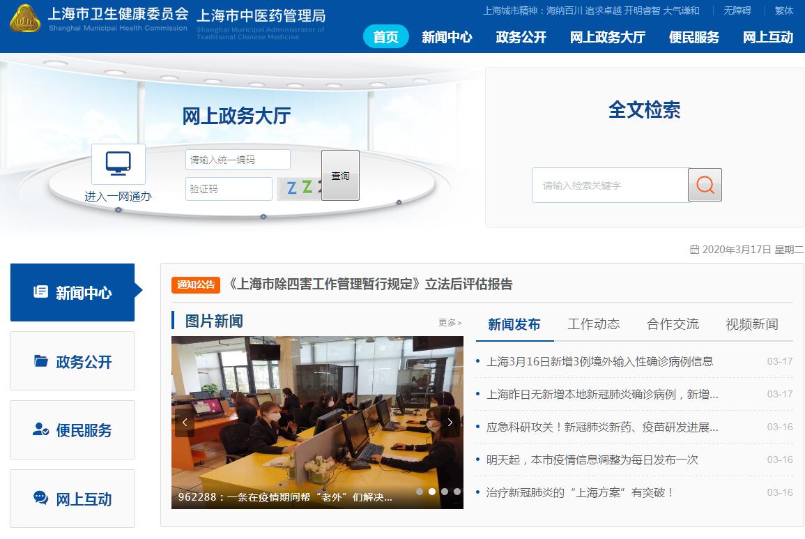 上海市卫生健康委员会主要职责:(一)贯彻执行国民健康政策以及有关卫生健康事业发展的法律、法规、规章和方针、政策。研究起草有关卫生健康工作的地方性法规、规章草案,拟订相关政策,并组织实施。(二)统筹规划本市卫生健康资源配置,编制卫生健康事业发展有关规划、区域卫生健康规划以及各类专项规划,并组织实施。(三)协调推进深化医药卫生体制改革,研究提出深化医药卫生体制改革政策、措施的建议。组织深化公立医院综合改革,深化管办分开,健全现代医院管理制度。制定并组织实施推动卫生健康公共服务提供主体多元化、提供方式多样化的政策措施,研究提出医疗服务和药品价格政策的建议。协调推进健康服务业发展。(四)负责疾病预防控制工作,协调有关部门对重大疾病实施预防控制和干预。制定并组织落实传染病和慢性非传染性疾病防治规划、免疫规划及政策措施。对严重危害公众健康的公共卫生问题组织实施监测和干预。依法监测传染病,强化预警机制,发布法定报告传染病疫情信息。逐步增加和完善对部分慢性非传染性疾病的监测,并组织相应的健康服务与管理。组织开展健康教育与健康促进,倡导健康生活方式。(五)负责卫生应急工作,指导实施突发公共卫生事件预防控制与应急处置,负责突发公共卫生事件监测预警和风险评估,发布突发公共卫生事件应急处置信息,负责在上海举行的重大活动的医疗卫生保障和重大突发事件的医疗卫生救援。健全落实卫生健康行业安全生产责任制,指导协调、监督管理行业安全生产工作。(六)按照分工,管理卫生健康标准化工作。拟订疾病防治、卫生监督、中医药等方面的规范和标准。组织开展食品安全风险监测评估,依法制定食品安全地方标准,负责食品安全企业标准备案。组织拟订并协调落实应对人口老龄化政策措施,负责推进老年健康服务体系建设和医养结合工作。规划和组织实施本市老年医疗护理服务体系建设。(七)组织实施国家基本药物制度,根据国家基本药物制度和基本药物目录,组织制定并实施上海市基本药物制度与政策。负责医疗机构的抗菌药物、麻醉药品、精神药品等药品的临床药事管理相关工作以及合理用药监测工作,负责职责范围内医疗器械使用行为的监督管理。完善临床药学服务体系,开展药品使用监测、临床综合评价和短缺药品预警工作。(八)负责传染病防治、医疗卫生机构医疗服务、妇幼保健、采供血机构及临床用血安全的监督管理,负责职责范围内的职业卫生、放射卫生、环境卫生、学校卫生、公共场所卫生、饮用水卫生安全等公共卫生的监督管理,健全卫生健康综合监督体系。(九)制定医疗机构、医疗服务行业管理办法并监督实施,建立医疗质量控制、医疗服务评价和监督管理体系。负责医疗卫生机构、卫生健康专业技术人员、医疗技术临床应用、大型医用设备实施资质管理和许可准入。制定并组织实施本市医疗服务规范、标准和卫生健康专业技术人员执业规则、服务规范。加强医疗卫生机构运行监管。会同有关部门制定公立医院绩效考核评价办法,对公立医院绩效考核评价工作进行监督、指导。承担公立医院绩效评价的日常工作并提出初步绩效评价。组织公民无偿献血。负责康复、护理、院前急救、临床重点专科建设等工作。按照分工,负责公立医疗卫生机构党建指导工作,推进全行业精神文明建设和政风行风建设。(十)负责本市妇幼健康服务体系建设,负责妇幼卫生、生殖健康、出生缺陷筛查和干预等工作。负责计划生育管理和服务工作,开展出生人口监测预警,研究提出人口与家庭发展相关政策建议,完善计划生育政策,建立完善计划生育特殊困难家庭扶助和促进计划生育家庭发展等机制。(十一)负责本市基层卫生保健、社区卫生、农村卫生工作,规划并推进实施基层卫生服务体系建设,指导社区卫生服务机构和基层卫生保健机构规范建设、运行和服务。推进卫生健康科技创新发展,指导科技成果的转化和推广。负责毕业后医学教育和继续医学教育的管理,协助有关部门指导中等、高等卫生职业教育管理。指导卫生健康人才队伍建设。组织开展卫生健康领域国际交流与合作、与港澳台地区交流合作、卫生援外和对口支援工作。(十二)指导和协调中医、中西医结合机构的设置和资源配置。承担中医医疗、预防、保健、康复与临床用药的指导、监督和管理。协调、管理国家和上海重大中医药科研项目,开展中医药技术的推广应用。协调推动中医药传承发展,负责各级中医药人才培养计划的制定和实施。(十三)指导上海市计划生育协会的业务工作。加强对上海申康医院发展中心的业务指导和依法监管。(十四)完成市委、市政府交办的其他任务。