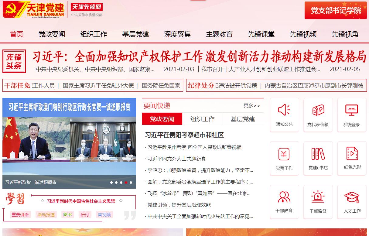 天津先锋网(天津党建网)由中共天津市委组织部主办。