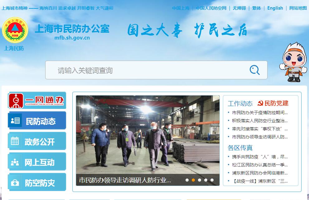 上海市民防办公室,为市政府直属机构。上海市民防办公室挂上海市人民防空办公室牌子。其主要职责是:(一)贯彻执行有关民防、人民防空的法律、法规、规章和方针、政策;结合本市实际,研究起草有关地方性法规、规章草案和政策,并组织实施有关法规、规章和政策。(二)组织拟订民防建设总体规划;组织编制本市人民防空袭方案;组织编制民防工程建设规划、民防通信警报与信息化建设规划;负责实施有关人民防空建设和日常管理等方面的标准、规范,组织拟订相关的地方性标准、规范、规程。(三)负责本市人民防空基本指挥所、预备指挥所、机动指挥所及其配套设备设施的建设、运行和管理,指导、监督区县、街道、乡镇指挥所建设、运行和管理。(四)负责对本市重要经济目标的人民防空建设进行监督检查;负责上海区域内重要经济目标防护工作的协调监督工作,指导重要经济目标主管部门和单位编制并落实重要经济目标防护救援方案。(五)负责本市人民防空空情预警系统、人民防空警报系统、人民防空指挥通信系统的建设与管理;负责人民防空人口疏散基地的建设与管理;组织实施人民防空演习和人民防空警报试鸣工作。(六)负责本市民防工程建设、维修养护和拆除的监督管理;负责结合民用建筑修建防空地下室的行政审批;负责民防行业诚信体系建设和管理;负责民防专项投资工程的专业审核和计划的编报;负责本市民防工程安全质量监督机构的管理。(七)负责本市民防工程开发利用的综合协调管理工作;参与地下空间开发利用规划的审查,负责地下空间开发利用兼顾设防的监督管理;负责民防工程日常使用中防护功能完好的监管。(八)负责组织有关部门(单位)建立完善群众防空组织和民防专业队伍,并指导落实有关装备和训练工作;负责民防志愿者队伍的建设和管理;负责民防特种救援队伍的建设和管理;参与对危险化学品事故、放射性污染事故(核化恐怖袭击事件)现场进行的化学侦检、评估工作,提出相应对策建议并参与事故现场处置等;负责组织本系统应急力量参与地震等抢险救灾工作,需要时,提供指挥通信服务保障。(九)负责统筹协调全市应急避难场所的建设与管理;组织编制修订突发事件人员疏散撤离和应急避难场所启用预案。(十)负责组织协调人民防空科学技术研究、学术交流、技术攻关;组织、协调、指导本市人民防空及相关民防宣传教育培训工作;协调开展社区、学校、机关及企事业单位等社会民防建设工作;指导检查社区和基层单位开展人民防空演习训练。(十一)组织、指导、协调、实施本市民防行政执法工作;负责有关行政执法监督检查、民防行政复议和行政诉讼应诉工作。(十二)承办市国防动员委员会交办的其他事项。(十三)承办市政府交办的其他事项。
