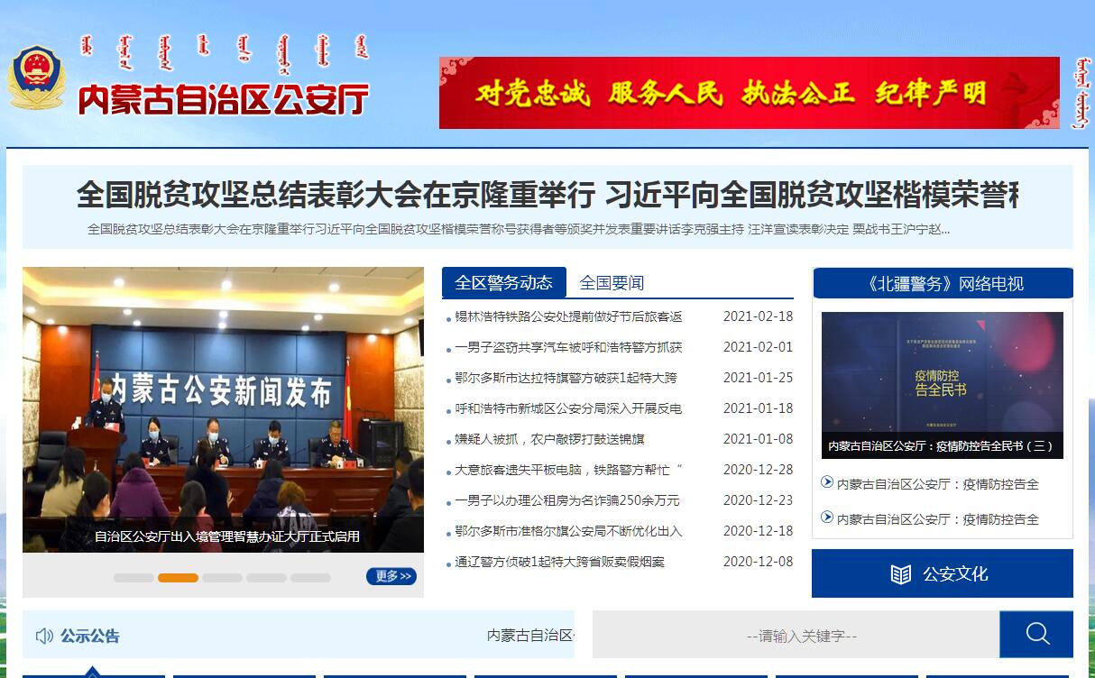 内蒙古自治区公安厅官方网站。