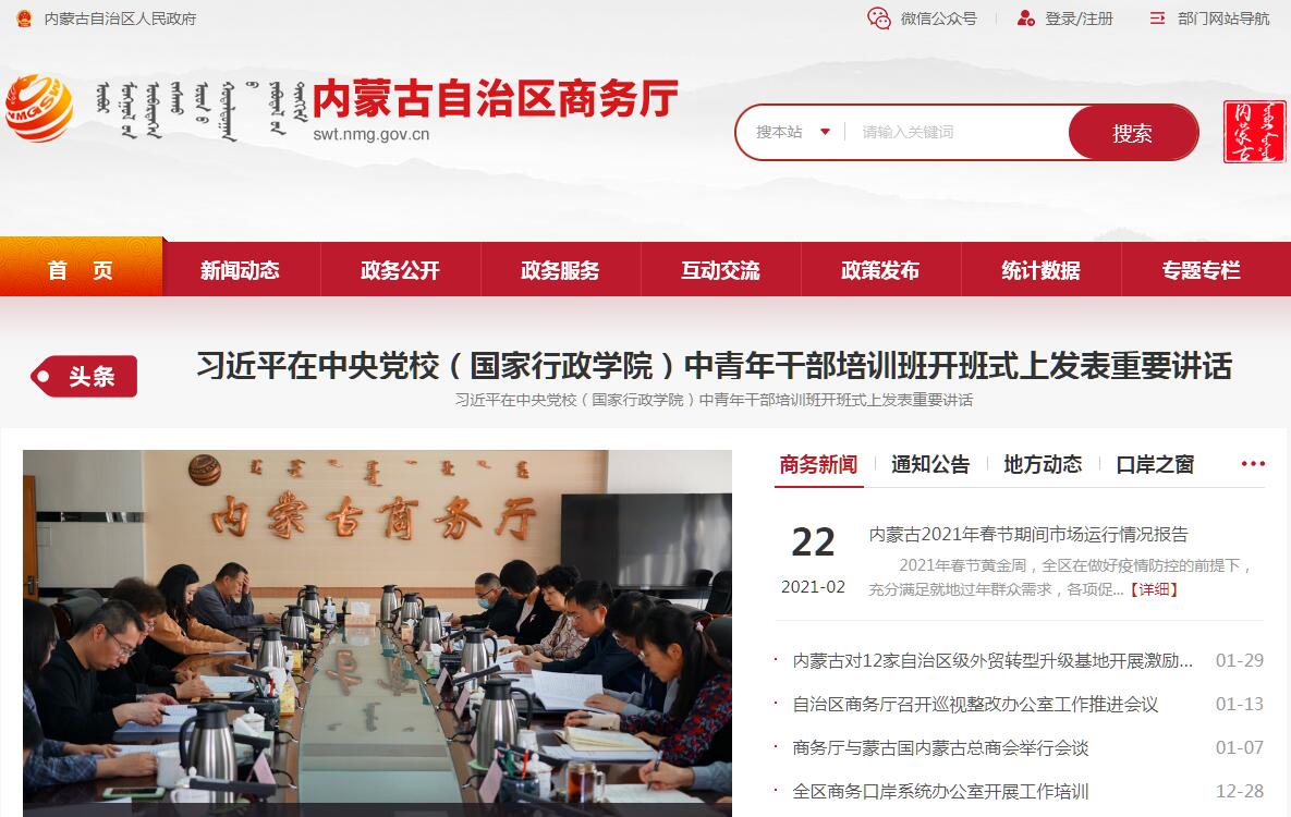 内蒙古自治区商务厅官方网站。
