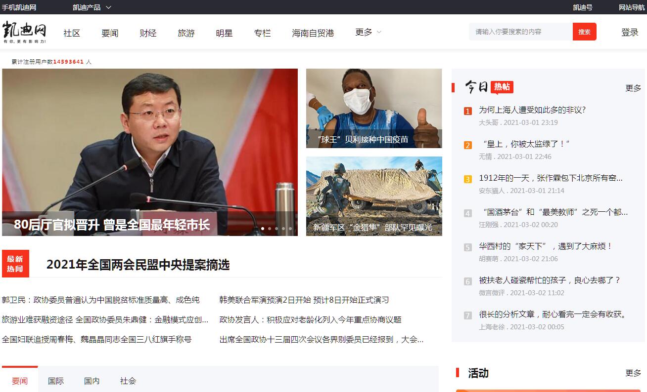 | 网站简介: 凯迪网自2000年上线至今,已发展成为集内容资讯、互动社区于一体的互联网综合资讯服务平台。凯迪网下设要闻、财经、泛娱乐、旅游等多个热门资讯版块。2021年,凯迪网自有原创内容平台—凯迪号正式上线,为自媒体创作者们提供更优质的服务,让内容更有价值。 |
