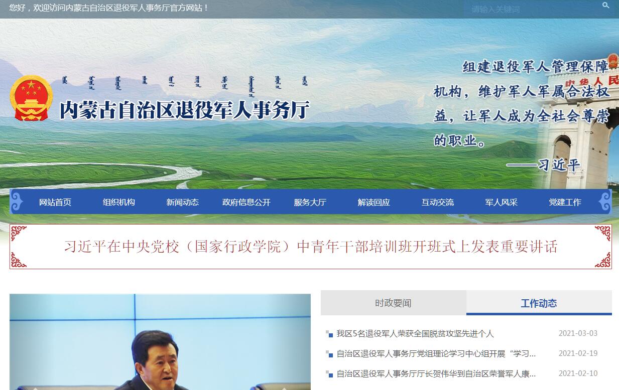 内蒙古自治区退役军人事务厅官方网站。