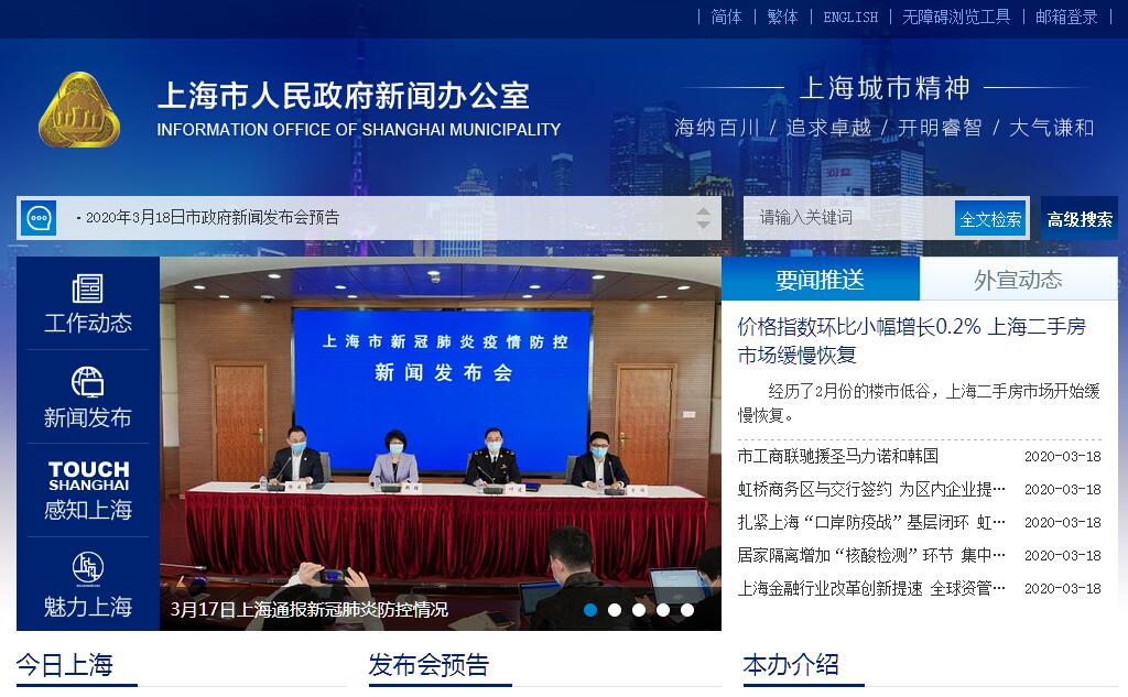 | 网站简介: 中共上海市委对外宣传办公室、上海市人民政府新闻办公室组建于1991年6月,是中共上海市委、上海市人民政府统一管理全市对外宣传工作的办事机构。其主要职责是为境内外媒体客观公正地报道上海的经济社会发展情况而服务,积极主动地对外推介上海,准确客观地展示上海城市形象。其主要职责是:(一)对外说明、推介上海,组织对外介绍上海经济社会发展情况。(二)指导和协调本市对外新闻报道工作,组织本市重大政策、重大事项、重大活动和重要会议的对外新闻报道。(三)制定本市对外新闻事业发展规划,并负责组织实施。(四)指导和协调本市重要机构、重要组织和各区县、各委办局的新闻发布工作。(五)负责市政府新闻发布工作,组织市政府重要新闻的报道工作。(六)会同并协调有关部门做好外国及港澳台记者来沪采访报道方面的工作,为境外记者在沪采访提供服务。(七)组织和协调在海外推介上海的活动。(八)规划和指导介绍上海情况的图书、音像、影视出版物的制作、陈列、发行和赠送工作。(九)管理和协调本市互联网新闻工作。(十)研究世界主要媒体和港澳台媒体的涉沪报道,积极回应媒体关切。 |