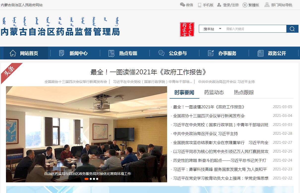 内蒙古自治区药品监督管理局官方网站。