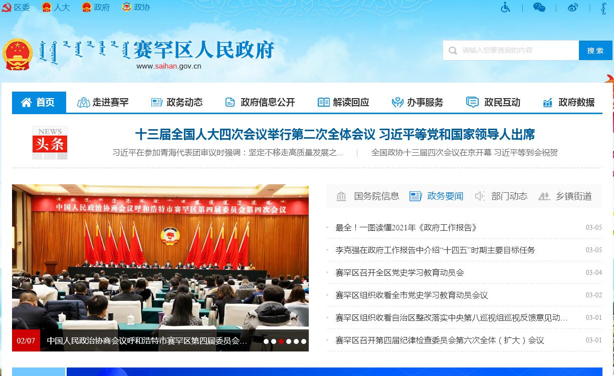呼和浩特市赛罕区人民政府官方门户网站。