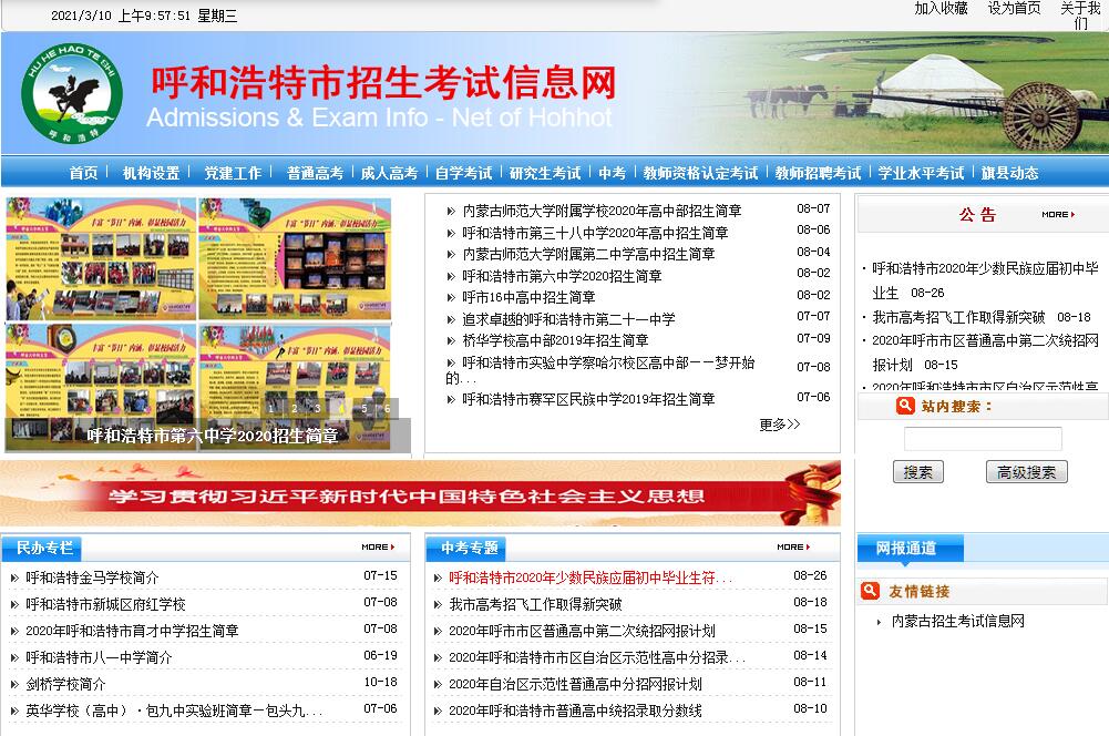 呼和浩特市考试招生信息网由呼和浩特市招生考试管理中心主办。