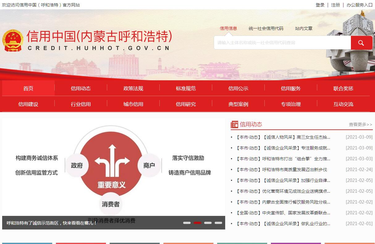 信用中国(呼和浩特)由呼和浩特市发展和改革委员会主办。