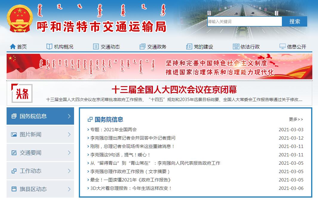 呼和浩特市交通运输局官方网站。