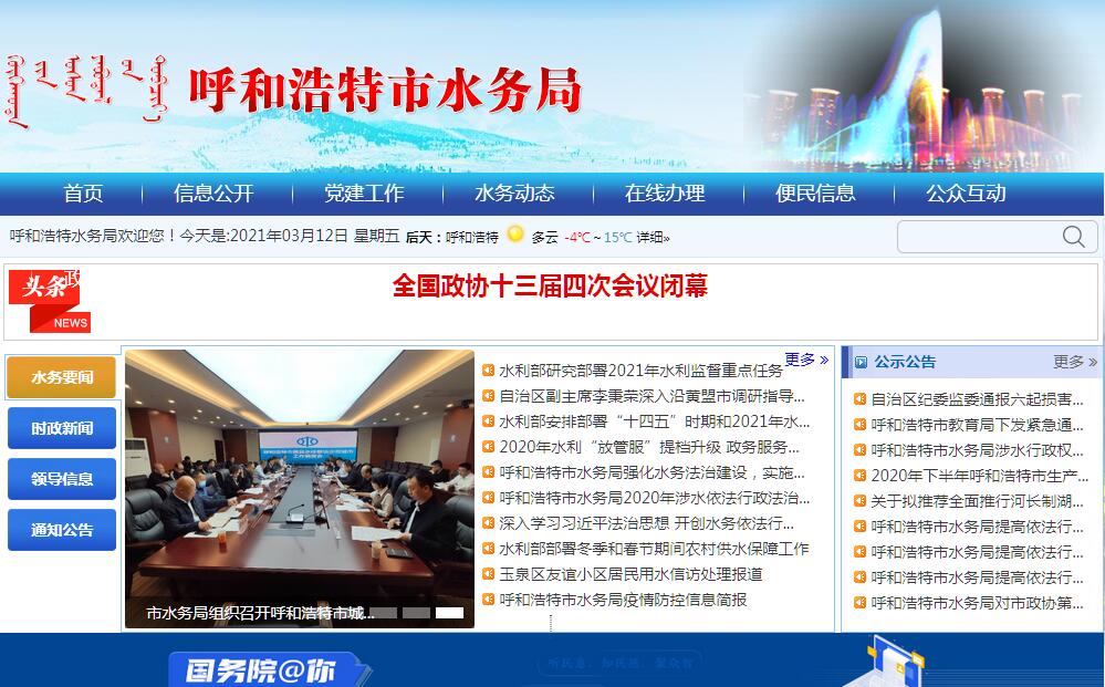 呼和浩特市水务局官方网站。