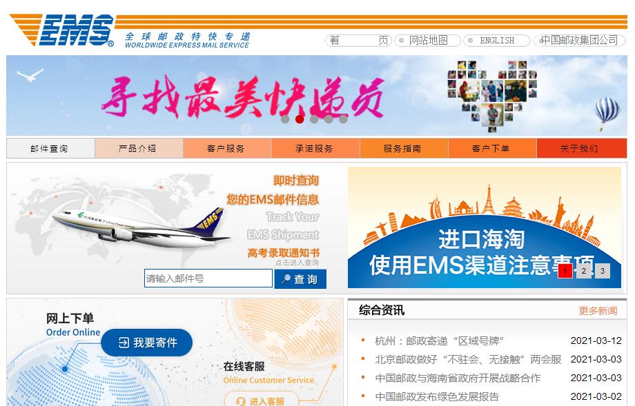 | 网站简介: 中国邮政速递物流主要经营国内速递、国际速递、合同物流等业务,致力于为客户提供方便快捷、安全可靠的门到门速递物流服务,成为持续引领中国市场、综合服务能力强、具全球竞争力和国际化发展空间的大型现代快递物流企业。 |