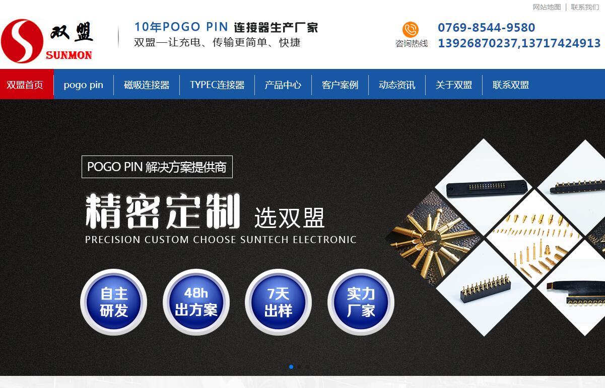 | 网站简介: 东莞市双盟电子有限公司以下简称[双盟电子],成立于2009年8月25日,现有员工200人,厂房面积近12000平方米,十余年来专注研发、生产、销售POGO PIN弹簧顶针连接器;USB3.1 、TYPEC连接器、TYPE C扩展坞、HDMI高清线;专注研发定制:精密弹簧针磁吸式连接器,精密磁吸式充电线,大电流快充TYPE C充电线。双盟电子始终坚持以研发技术导向为核心,集产品研发和应用服务于一体,以品质为根本,为客户提供高品质,高效,具有竞争力的产品和服务。 |