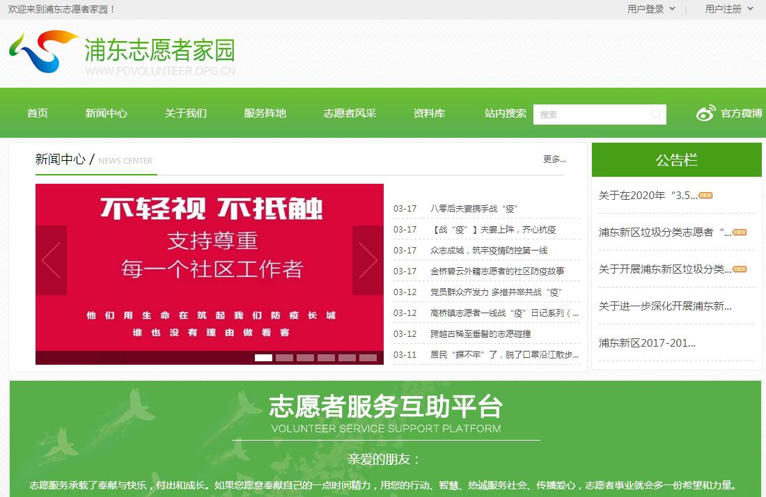 浦东新区志愿者活动作为新区精神文明建设的重要载体,是一项造福社会的高尚事业,弘扬志愿者精神,开展志愿服务活动,对于提高道德风尚,完善保障体系,促进市民道德建设都具有重要的意义。为努力推动志愿服务事业的发展,浦东新区于1998年4月成立了专门从事社会公益活动的全区性的社会团体——浦东新区志愿者协会。协会以邓小平理论和“三个代表”重要思想为指导,以“服务他人,奉献社会”为宗旨,以“平等、互助、奉献、进步”为准则,以自己的智能、技能、体能积极开展经常性的助老、助残、助医、助学、助困、邻里互助、敬老爱幼、护绿保洁、交通管理、治安防范、法律咨询、就业指导、科学普及、医疗保健、家电维修等公益活动和为国际国内交流活动、大型文化娱乐活动等提供服务,为推动社会道德实践和物质文明、精神文明建设作贡献。协会主管部门为中共浦东新区区委宣传部,协会领导机构为理事会,理事会由会长、副会长、秘书长、副秘书长以及若干理事组成,下设秘书处,负责日常工作。协会的主要工作职责是组织社会公益活动、规划、管理、培训、研究、对外交流等。浦东新区志愿者协会实行区、街镇、社区三级管理组织网络。另外还建立了一个志愿者工作信息发布、动态管理的公共服务平台——浦东志愿者家园网站(门户网站)。新区志愿者协会成立以来,围绕社会公益、社会公共服务、社会援助、社会管理等重点领域,通过条块结合,整合资源,在社会公共区域城市管理、助残帮困、法律援助、环保、六进社区、大型场馆服务、大型活动等方面开展了大量的工作。