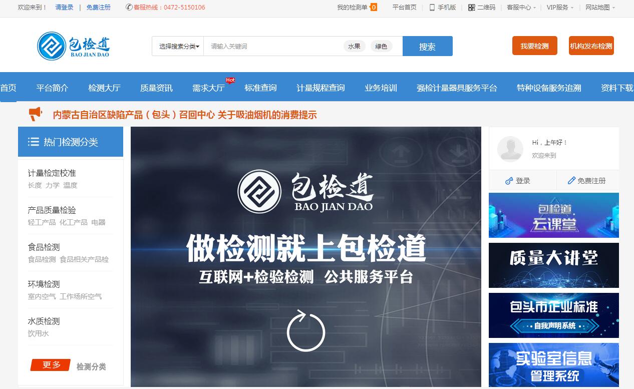 | 网站简介: 包检道_包头市质量基础设施公共服务平台“企业质量提升一站式服务平台”平台(以下简称平台)是由包头市产品质量计量检测所主办。 |