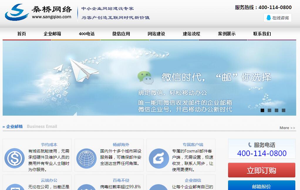 | 网站简介: 金华桑桥网络(原名金华乔根网络)是腾讯企业邮箱官方授权一级经销商(代理商、服务中心),销售服务的腾讯企业产品有腾讯企业邮箱、企业微信、企业QQ、RTX(腾讯通)等。 |