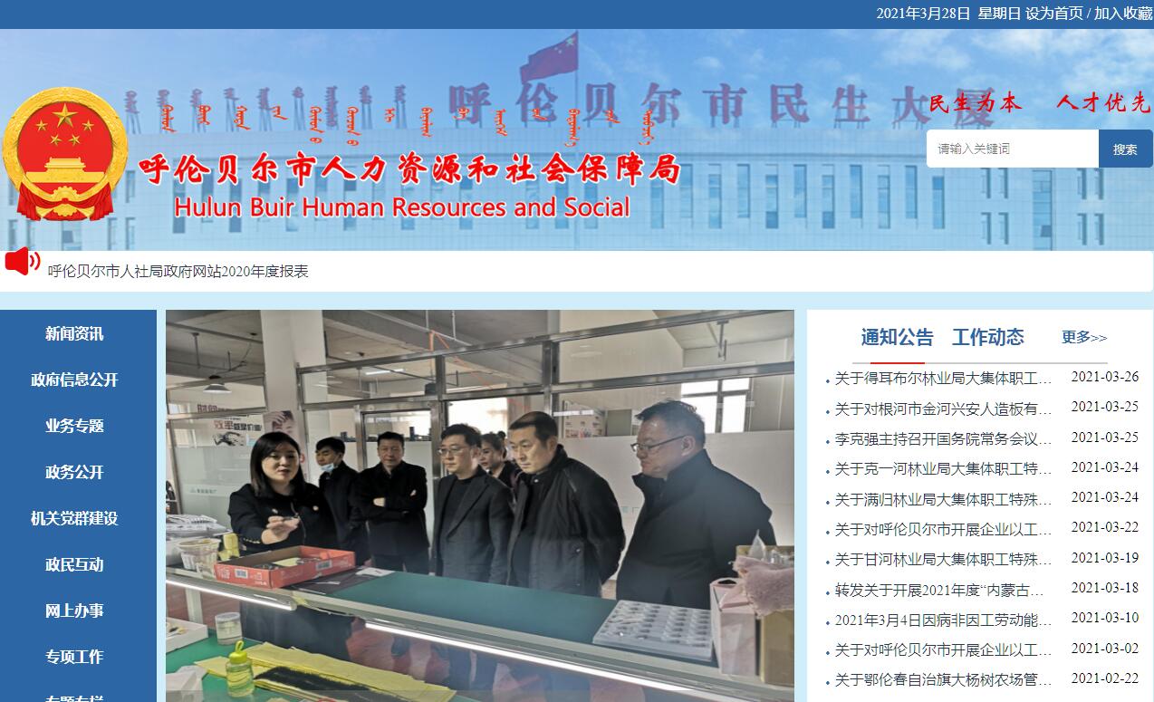 呼伦贝尔市人力资源和社会保障局官方网站。