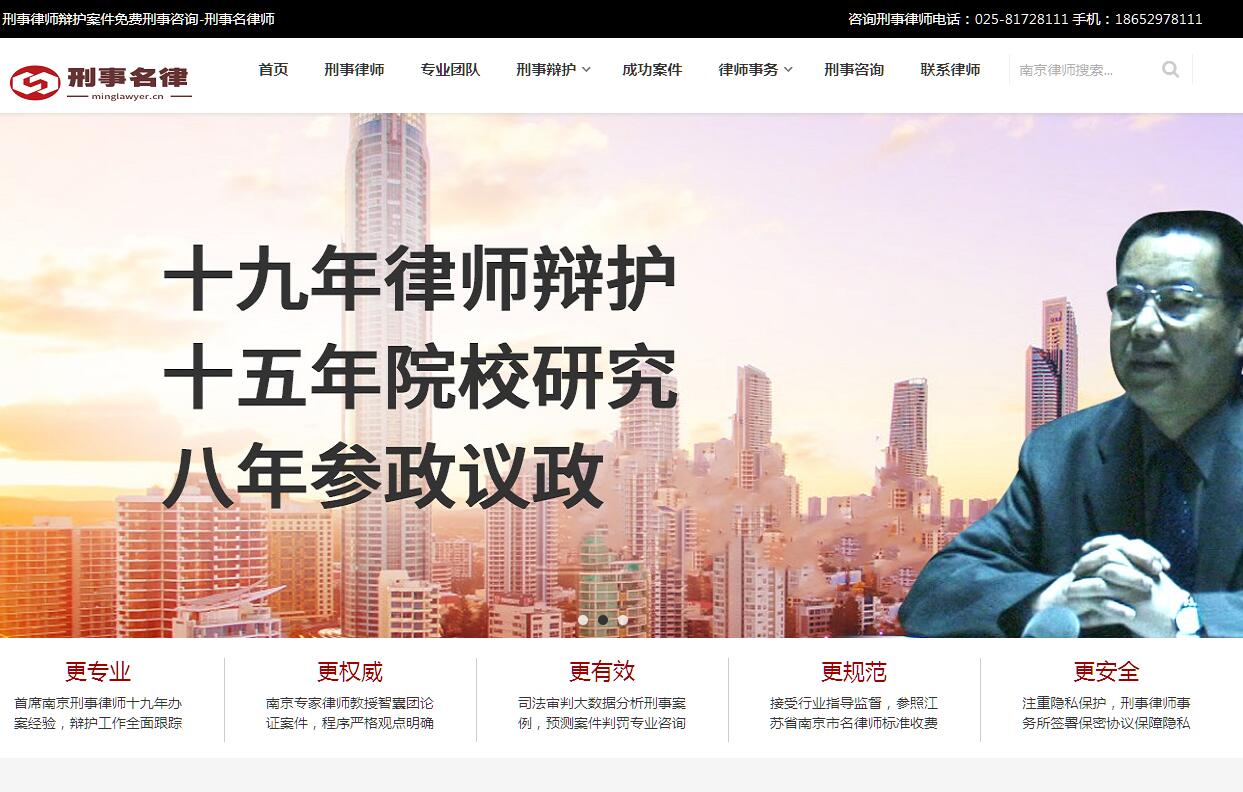 | 网站简介: 刑事名律师网以南京律师刑事辩护团队为依托,汇聚精英刑事律师,代理刑事事务,专业辩护案件,收费刑事律师咨询,再审案件申诉辩护。多起无罪辩护缓刑成功案例,精细辩护效果好。 |