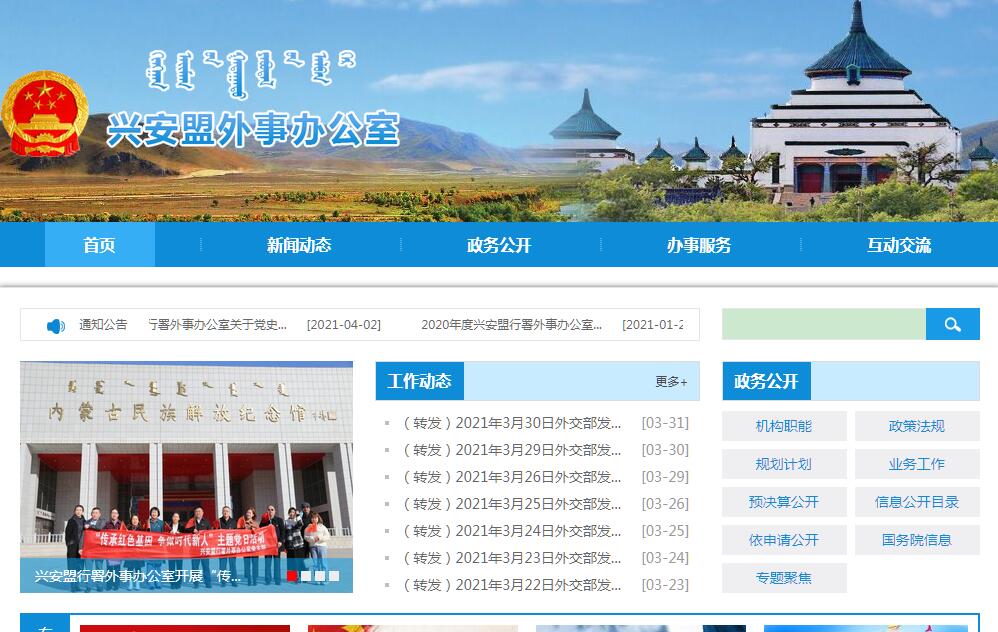 兴安盟外事口岸办公室官方网站。