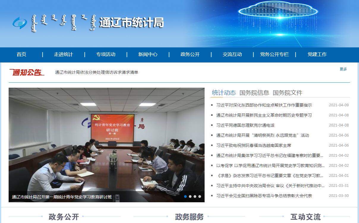 通辽市统计局官方网站。