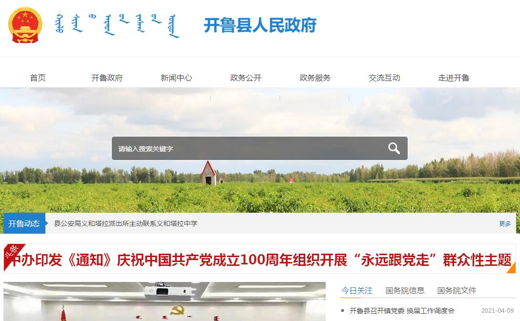 开鲁县人民政府官方门户网站。