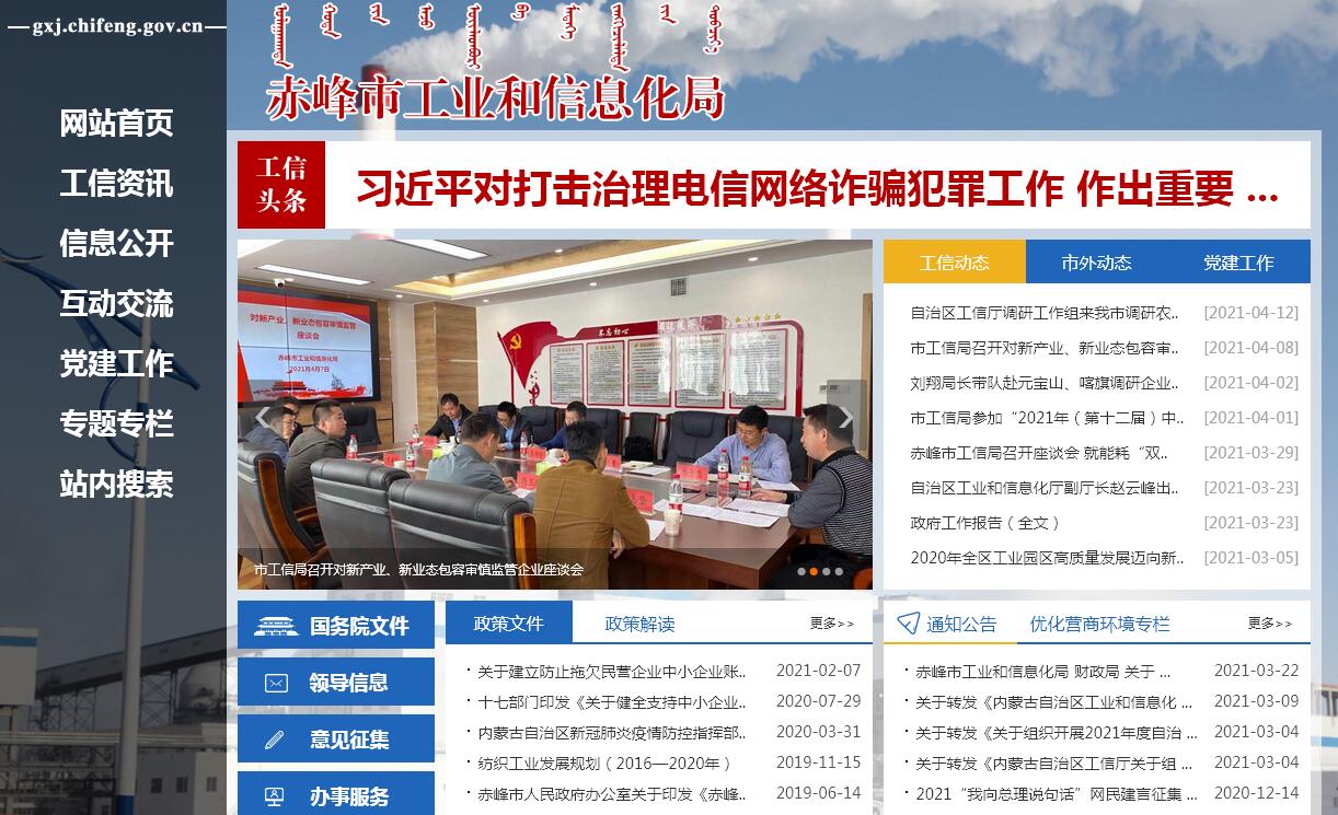 赤峰市工业和信息化局官方网站。