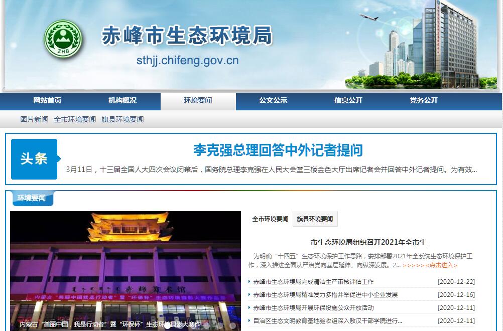 赤峰市生态环境局官方网站。