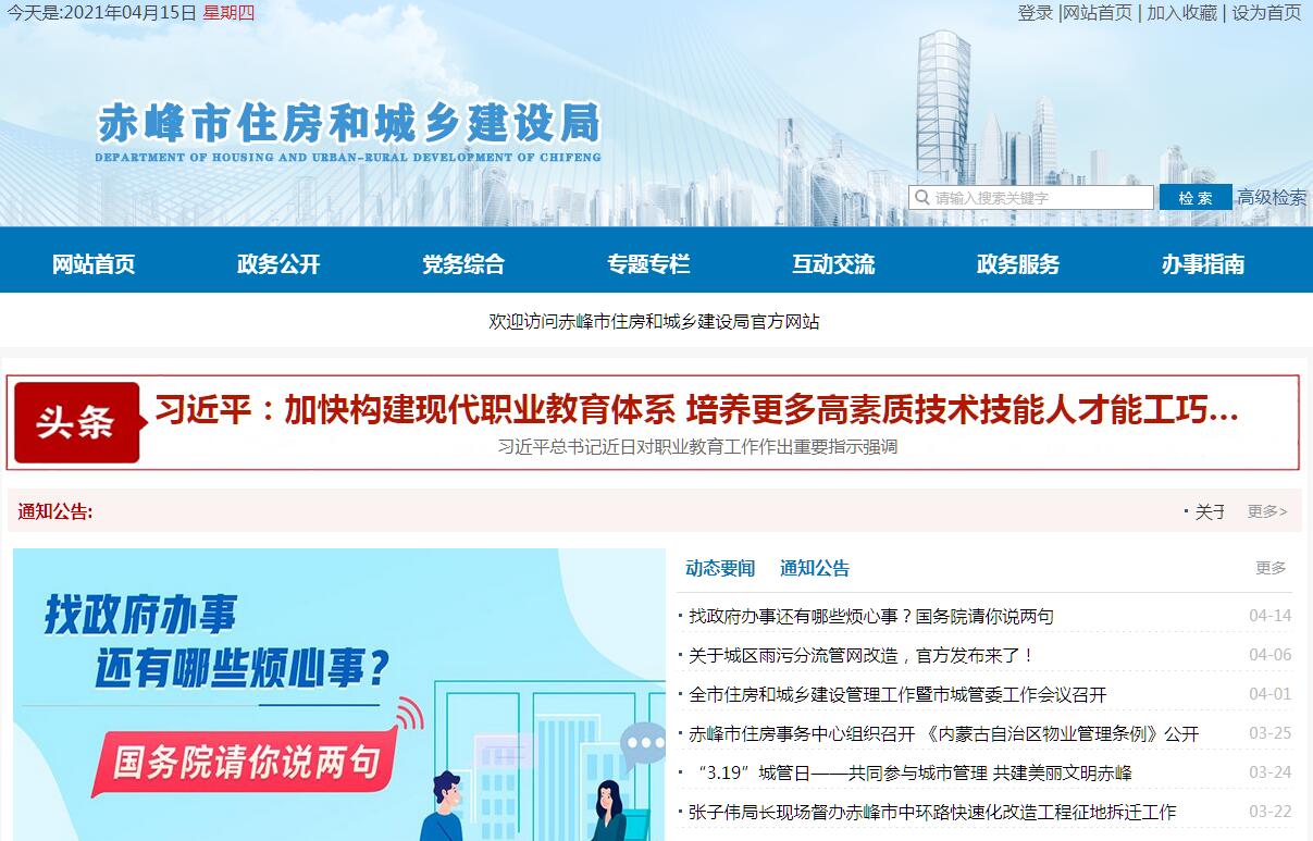 赤峰市住房和城乡建设局官方网站。