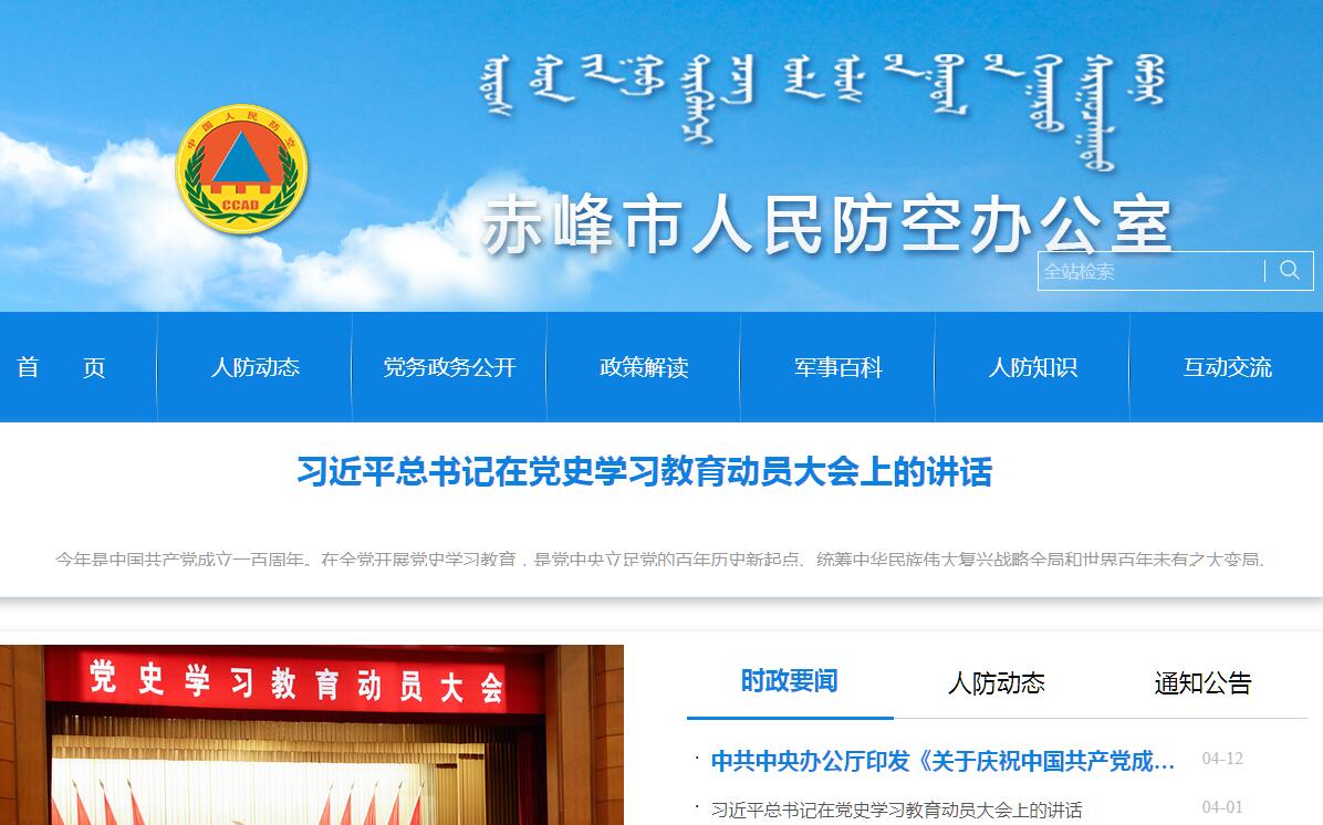 赤峰市人民防空办公室官方网站。