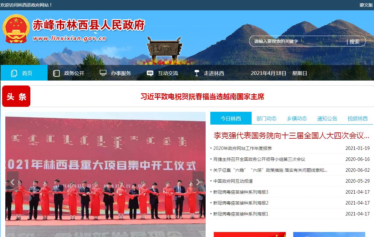 林西县人民政府官方门户网站。