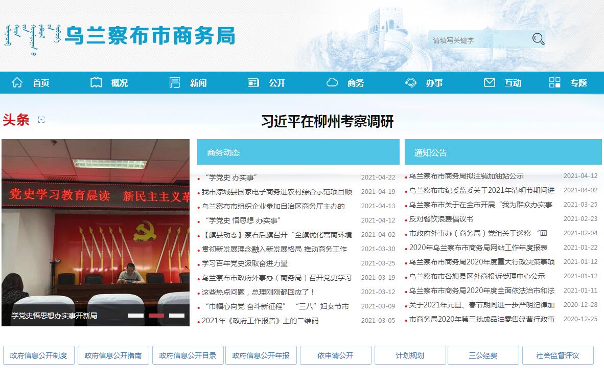 乌兰察布市商务局官方网站。