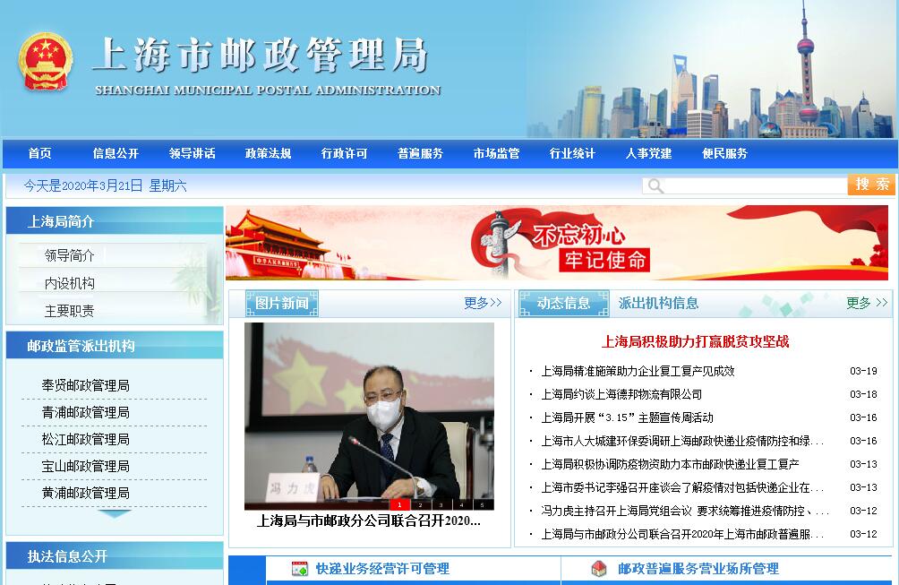 根据《国务院办公厅关于印发省(区、市)邮政监管机构机构设置主要职责和人员编制规定的通知》(国办发〔2006〕8号)规定,上海市邮政管理局于2006年9月6日正式成立,受国家邮政局与上海市政府管理,依照国家有关法律法规,对上海区域内邮政业行使政府监管职能。 ● 管理体制:实行政企分开,加强政府监管,完善市场机制,从机制和制度上保障普遍服务和特殊服务,确保通信安全。建立企业独立自主经营、政府依法监管的邮政体制,进一步促进我国邮政事业的发展。 ●性质: 上海市邮政管理局是上海市邮政业的政府主管机构,依法行使对上海市邮政业的监督和管理职权,副厅级建制。● 主要职责: 贯彻执行国家关于邮政行业管理的法律法规、方针政策和邮政服务标准,监督管理本市邮政市场,组织协调本地区邮政普遍服务以及机要通信、义务兵通信、党报党刊发行、盲人读物寄递等特殊服务的实施等。● 机构及人员:目前上海市邮政管理局共有公务员正式编制85人,内设办公室、政策法规处、普遍服务处(机要通信处)、市场监管处、人事处(纪检监察室)、财务处六个处室,下设六个邮政监管派出机构。其中,浦东邮政管理局管辖浦东新区;黄浦邮政管理局管辖黄浦区、虹口区、杨浦区和长宁区;宝山邮政管理局管辖宝山区、静安区(由原闸北、静安两区合并而成)和崇明区;青浦邮政管理局管辖青浦区、嘉定区和普陀区;松江邮政管理局管辖松江区、闵行区和徐汇区;奉贤邮政管理局管辖奉贤区和金山区。