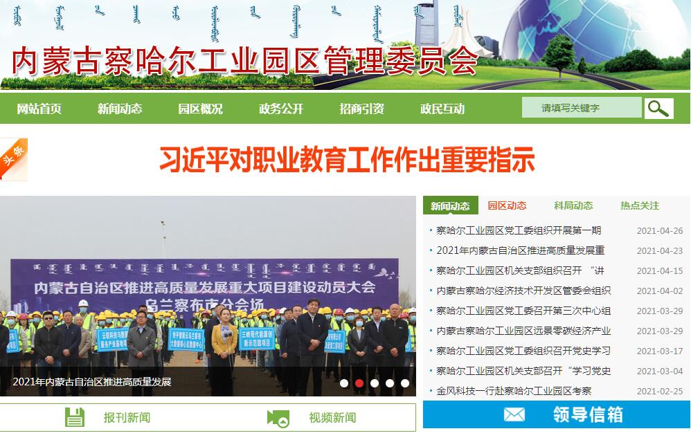内蒙古察哈尔工业园区管理委员会官方网站。