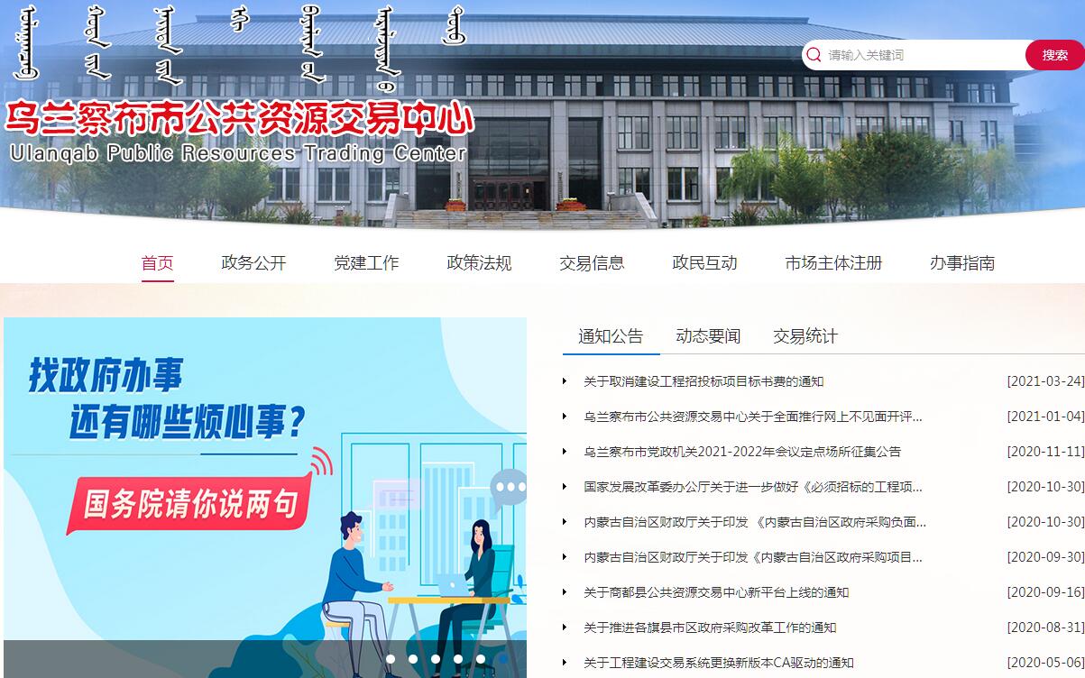 乌兰察布市公共资源交易中心官方网站。