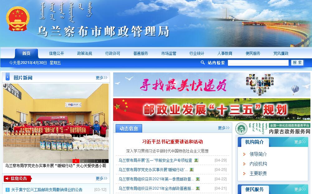 乌兰察布市邮政管理局官方网站。