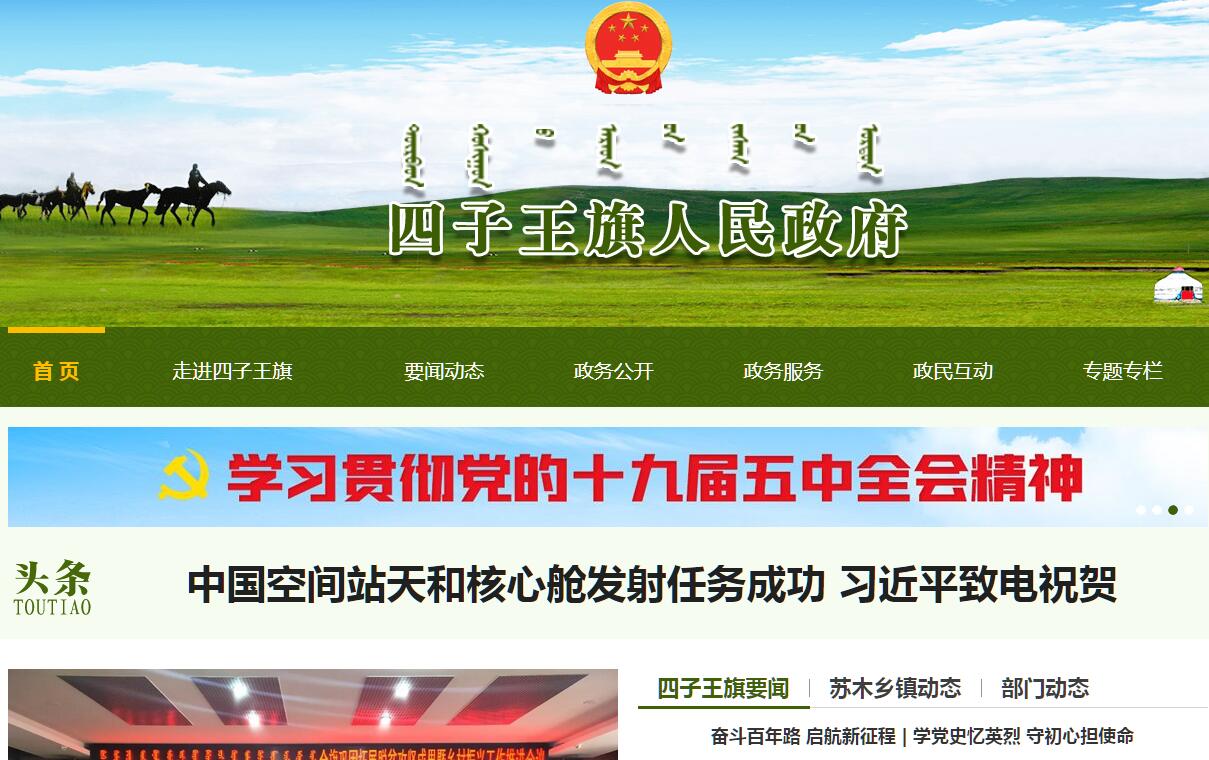 四子王旗人民政府官方门户网站。
